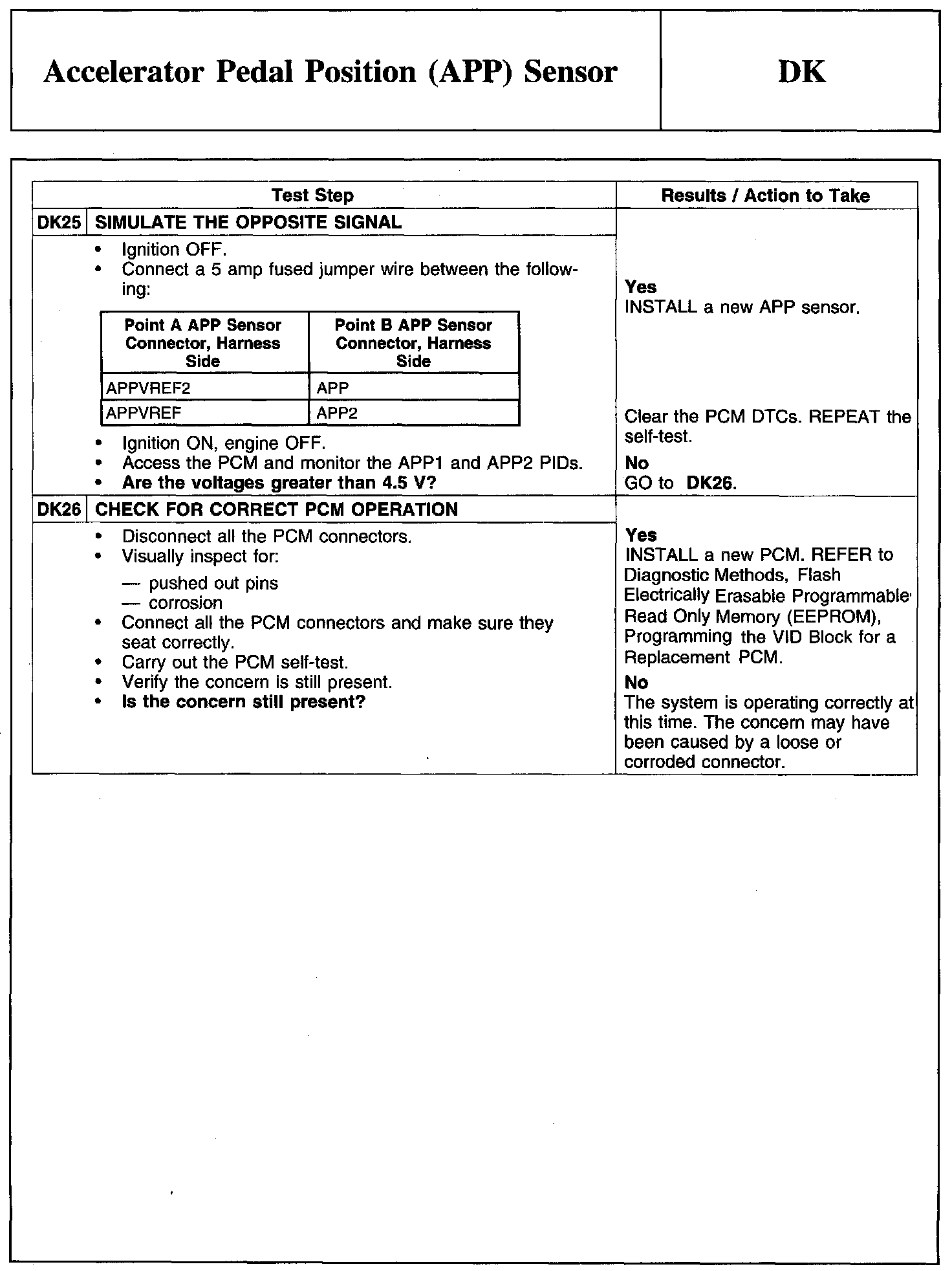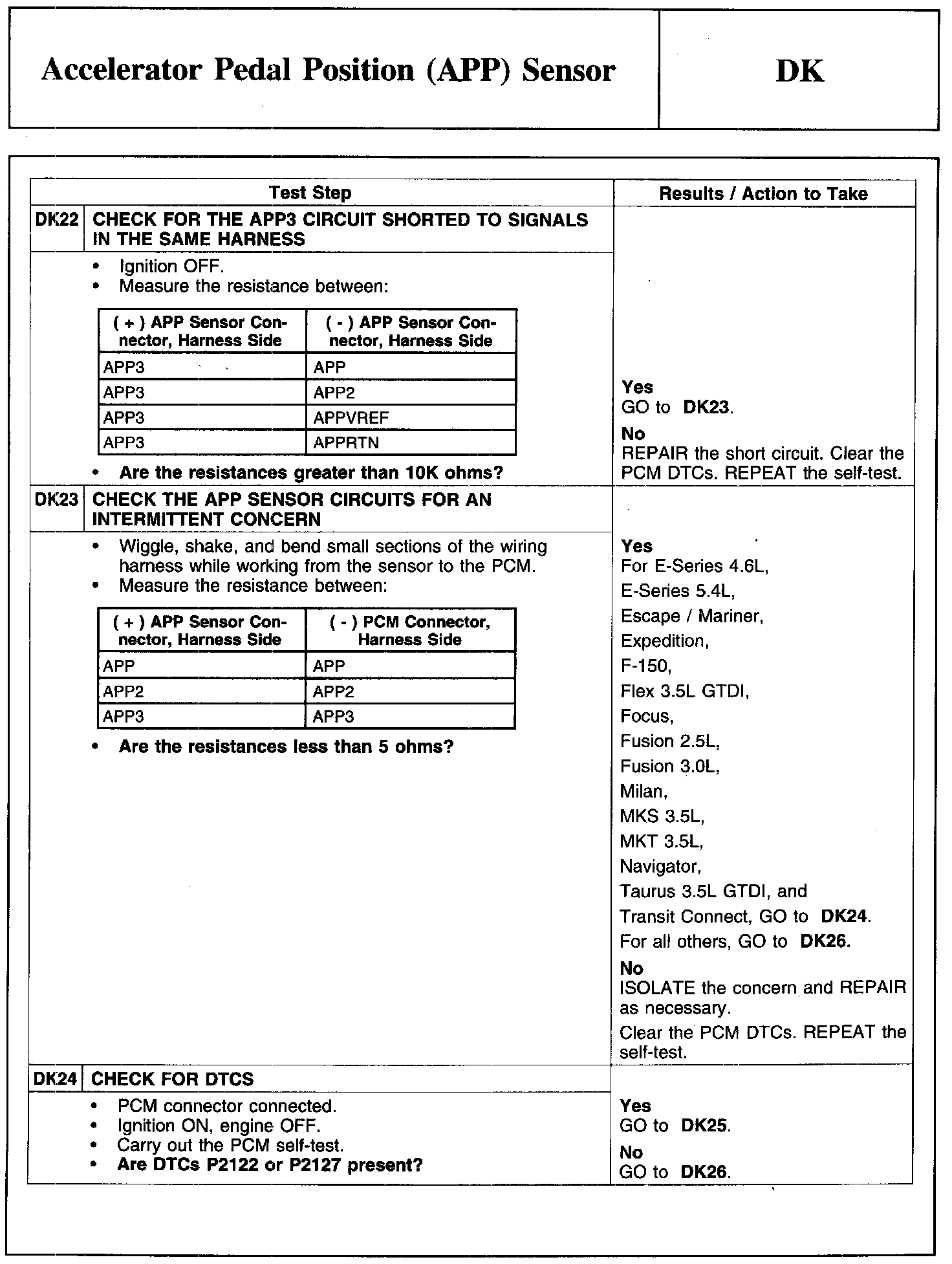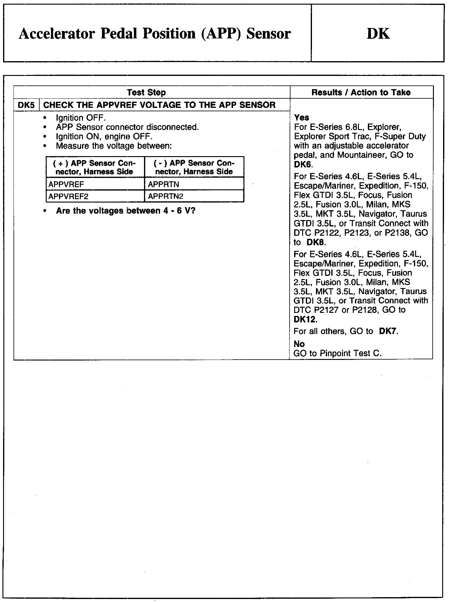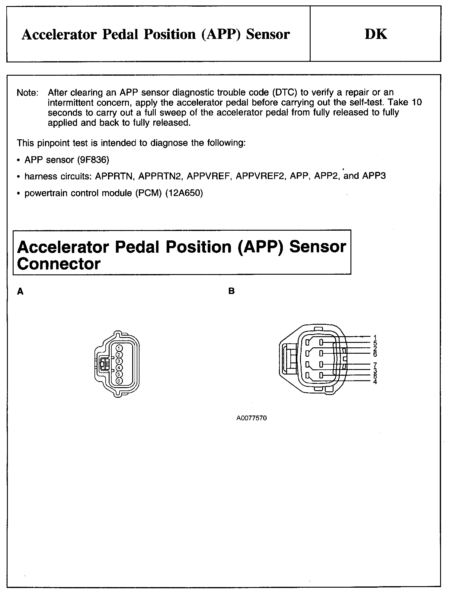 PINPOINT TEST DK: ACCELERATOR PEDAL POSITION (APP) SENSOR