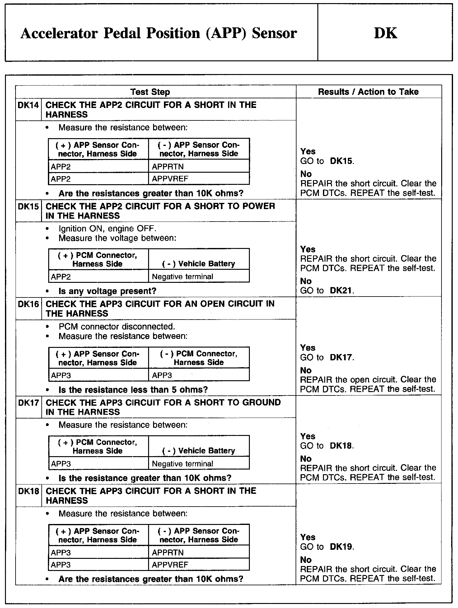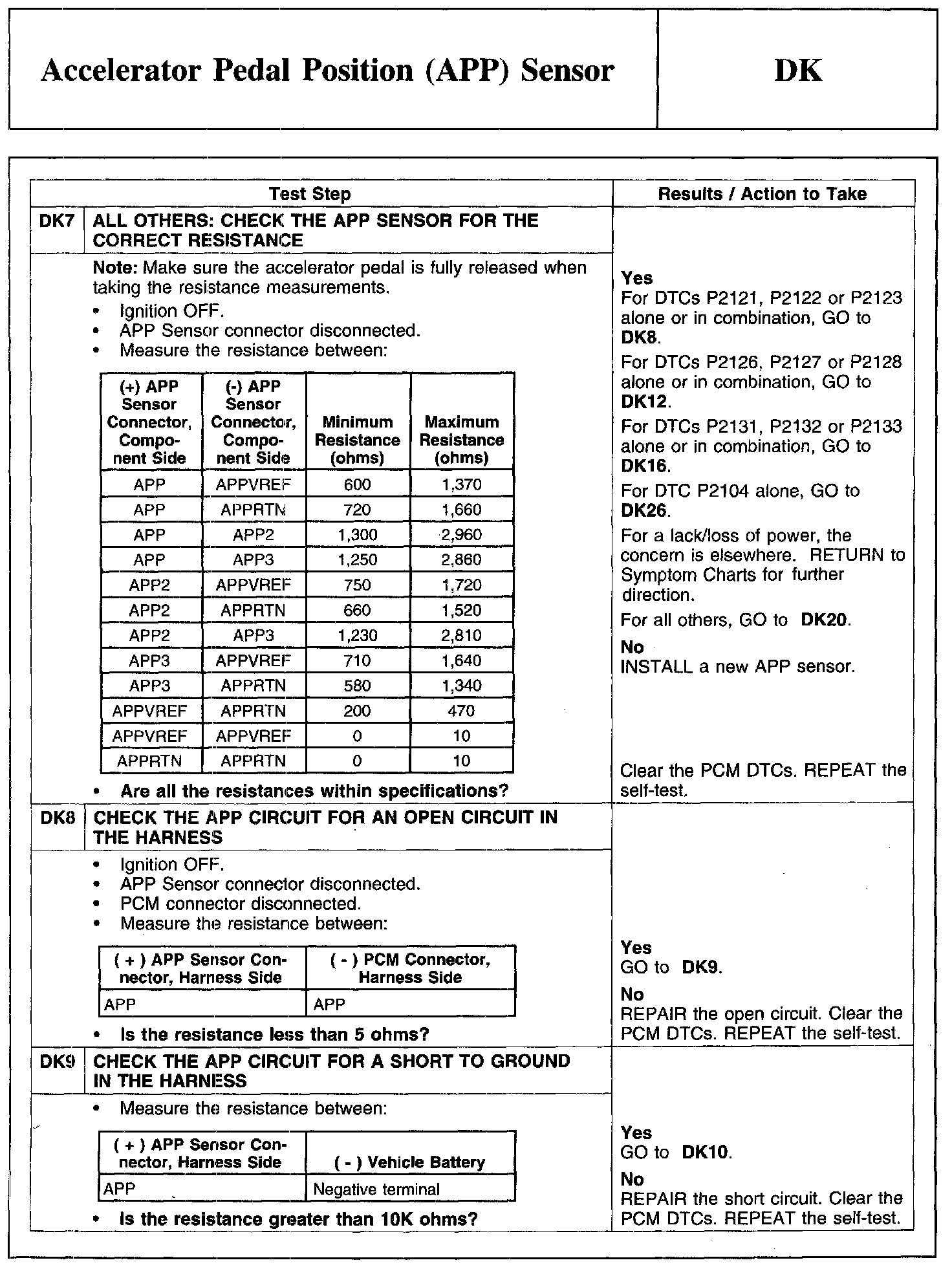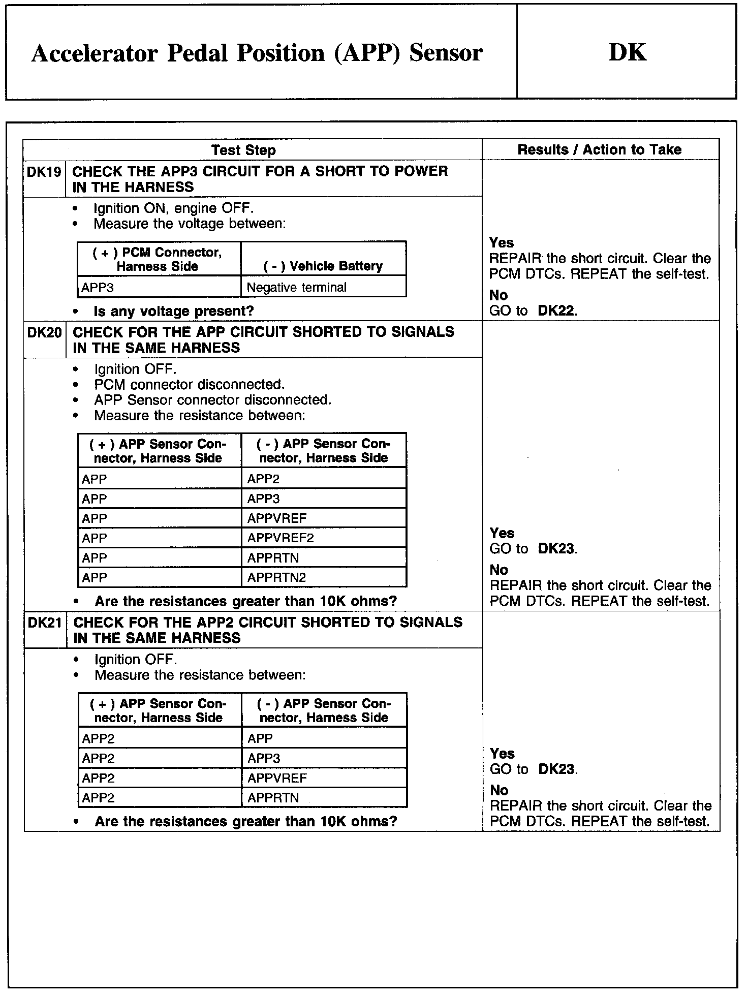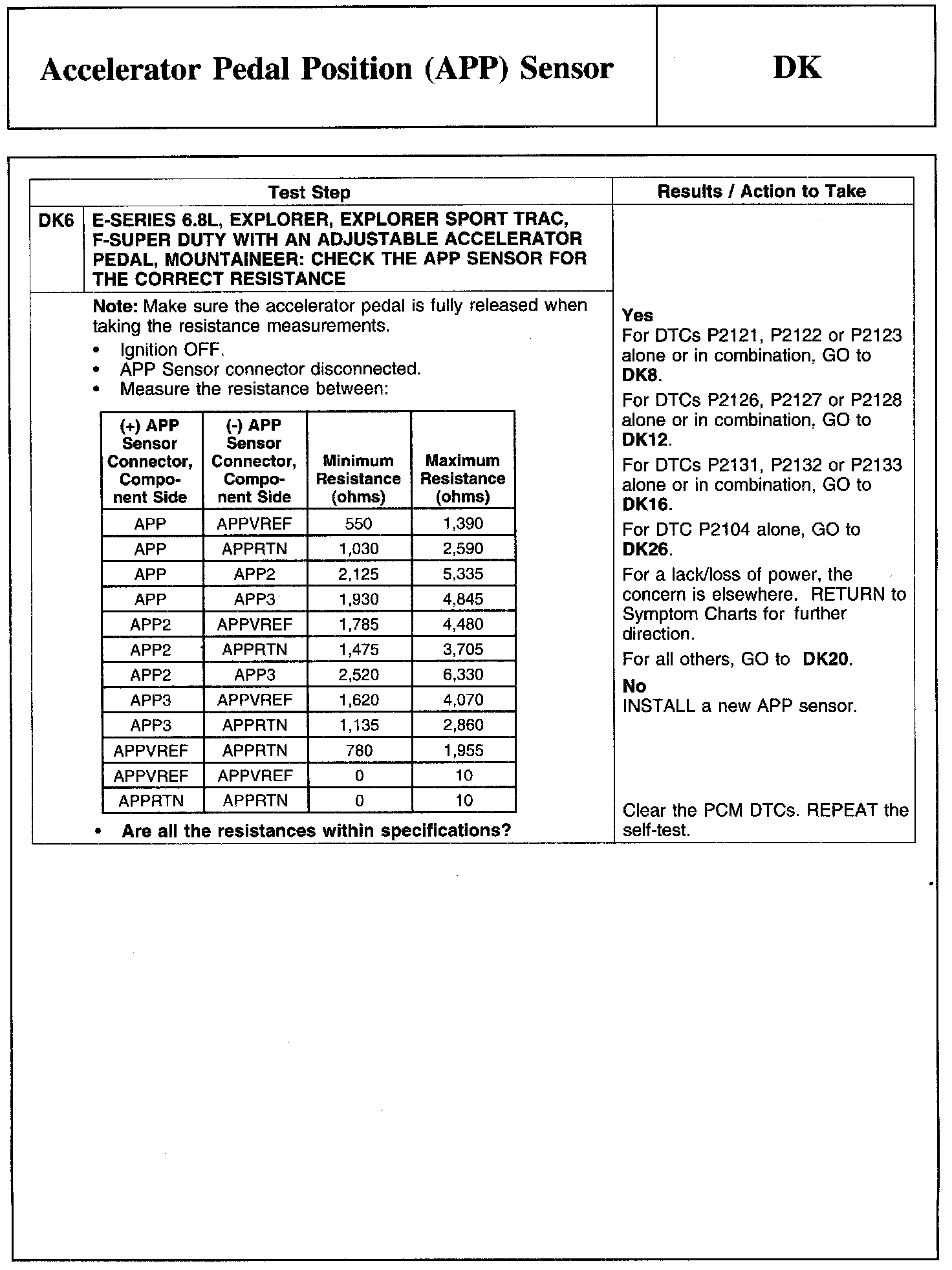 PINPOINT TEST DK: ACCELERATOR PEDAL POSITION (APP) SENSOR
