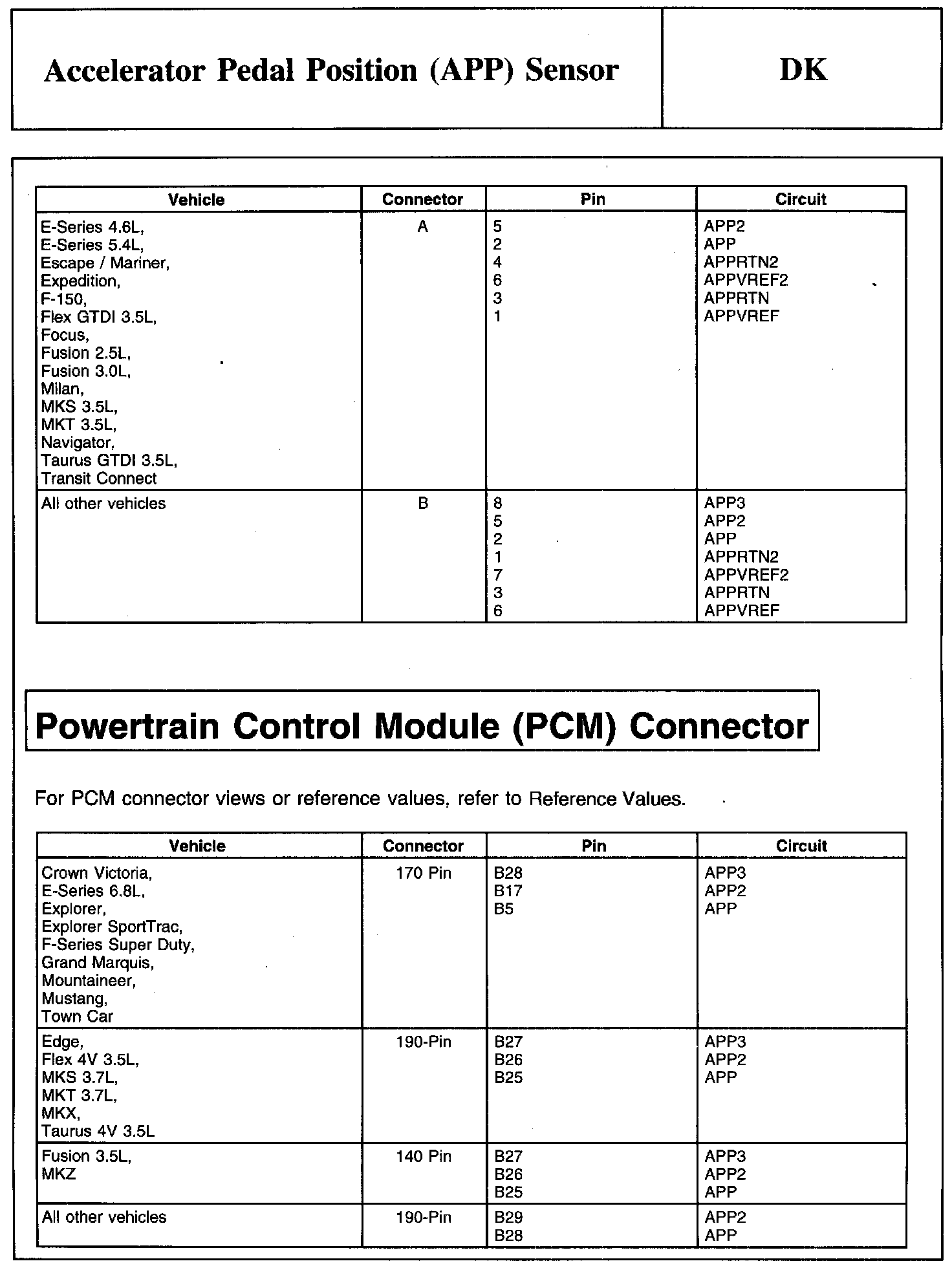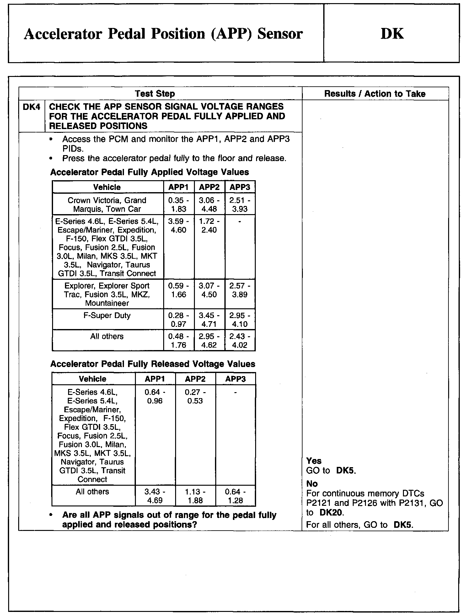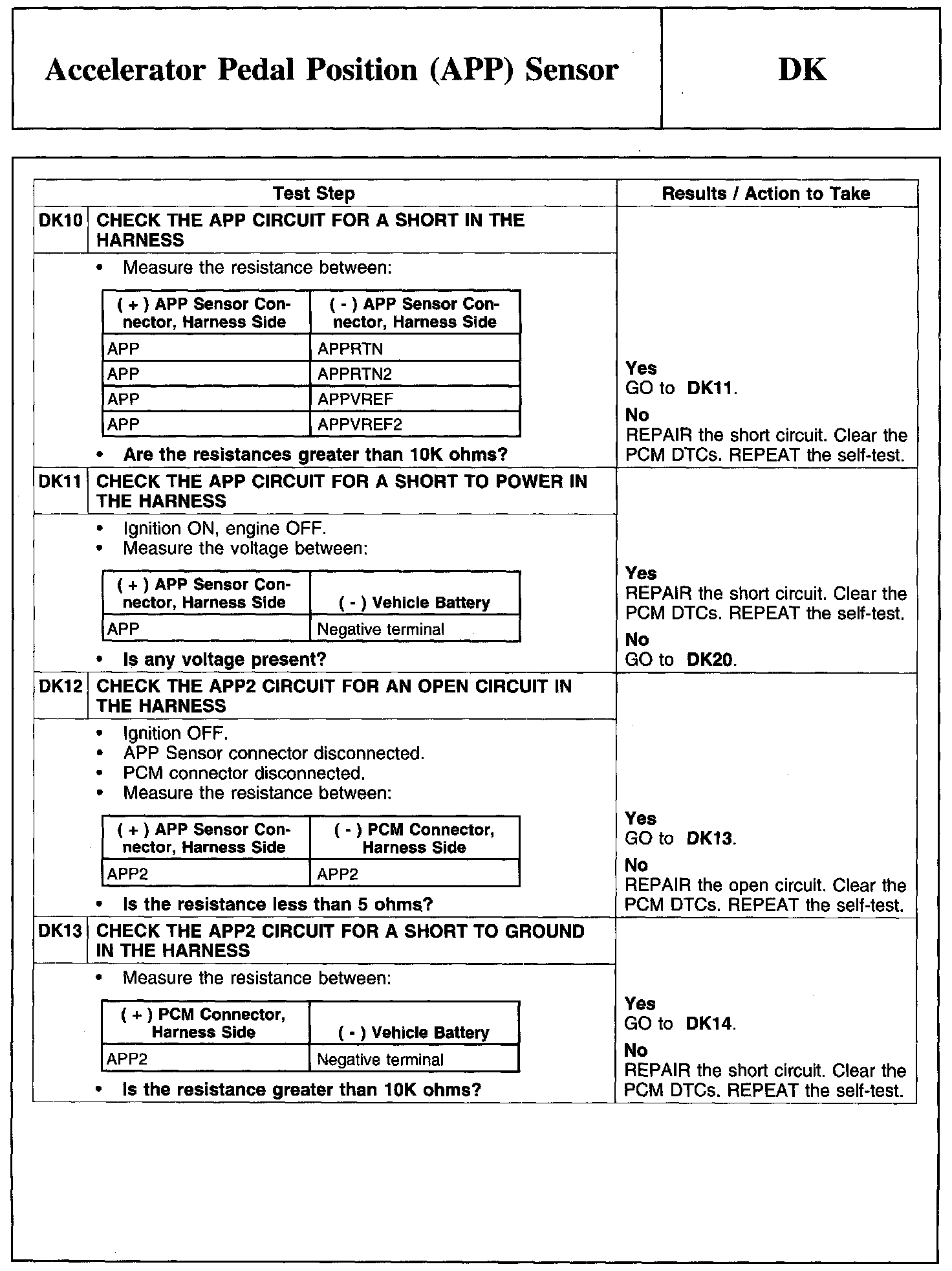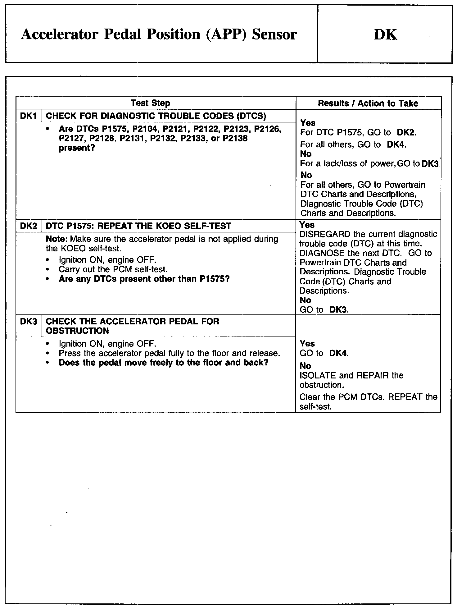 PINPOINT TEST DK: ACCELERATOR PEDAL POSITION (APP) SENSOR