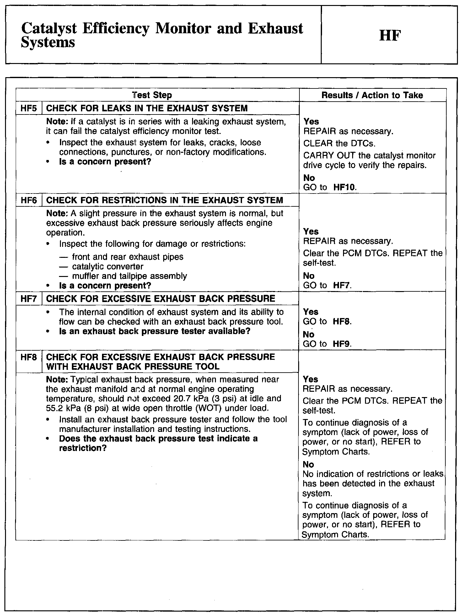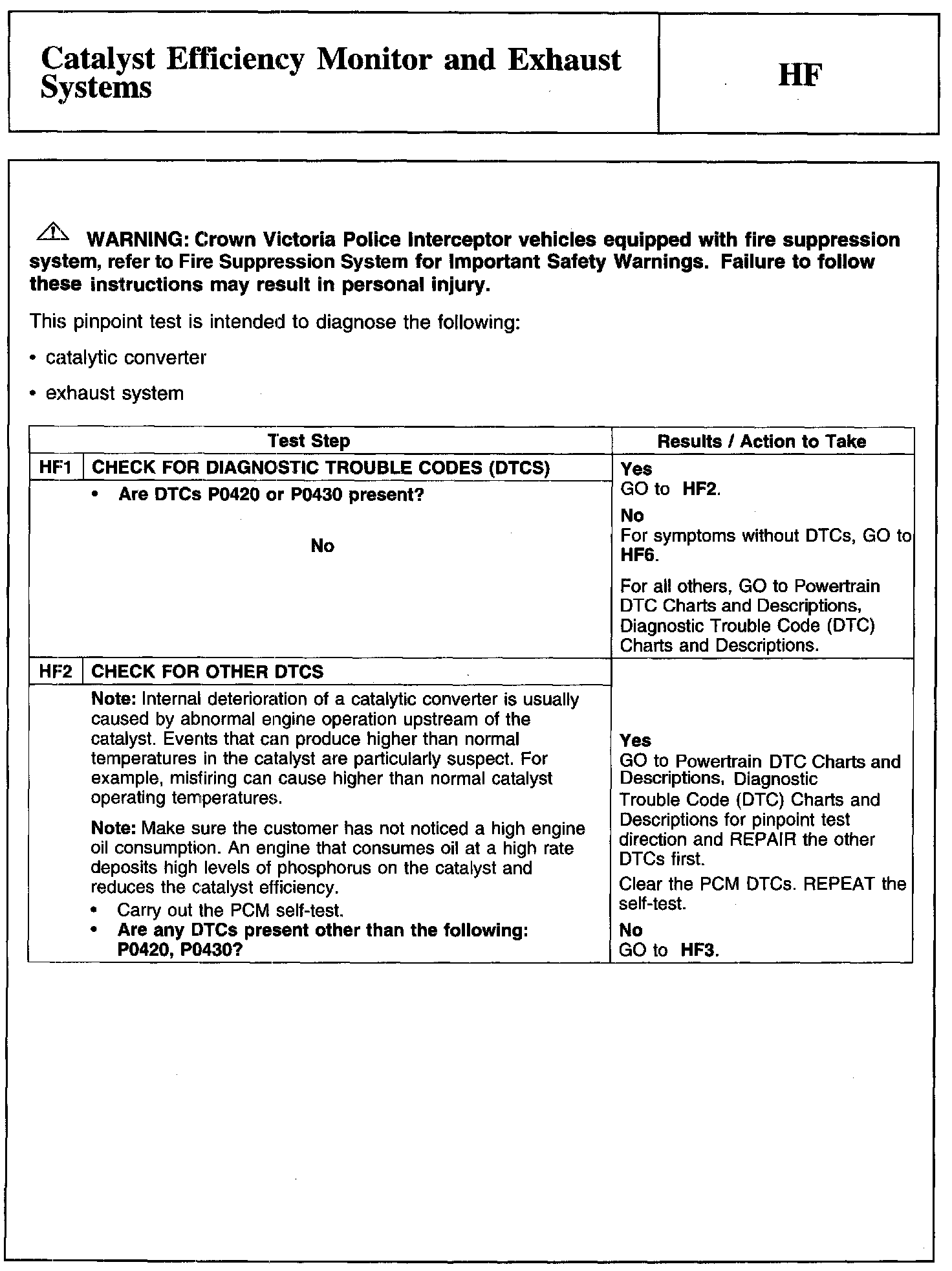 Test HF: Catalyst Efficiency Monitor and Exhaust Systems