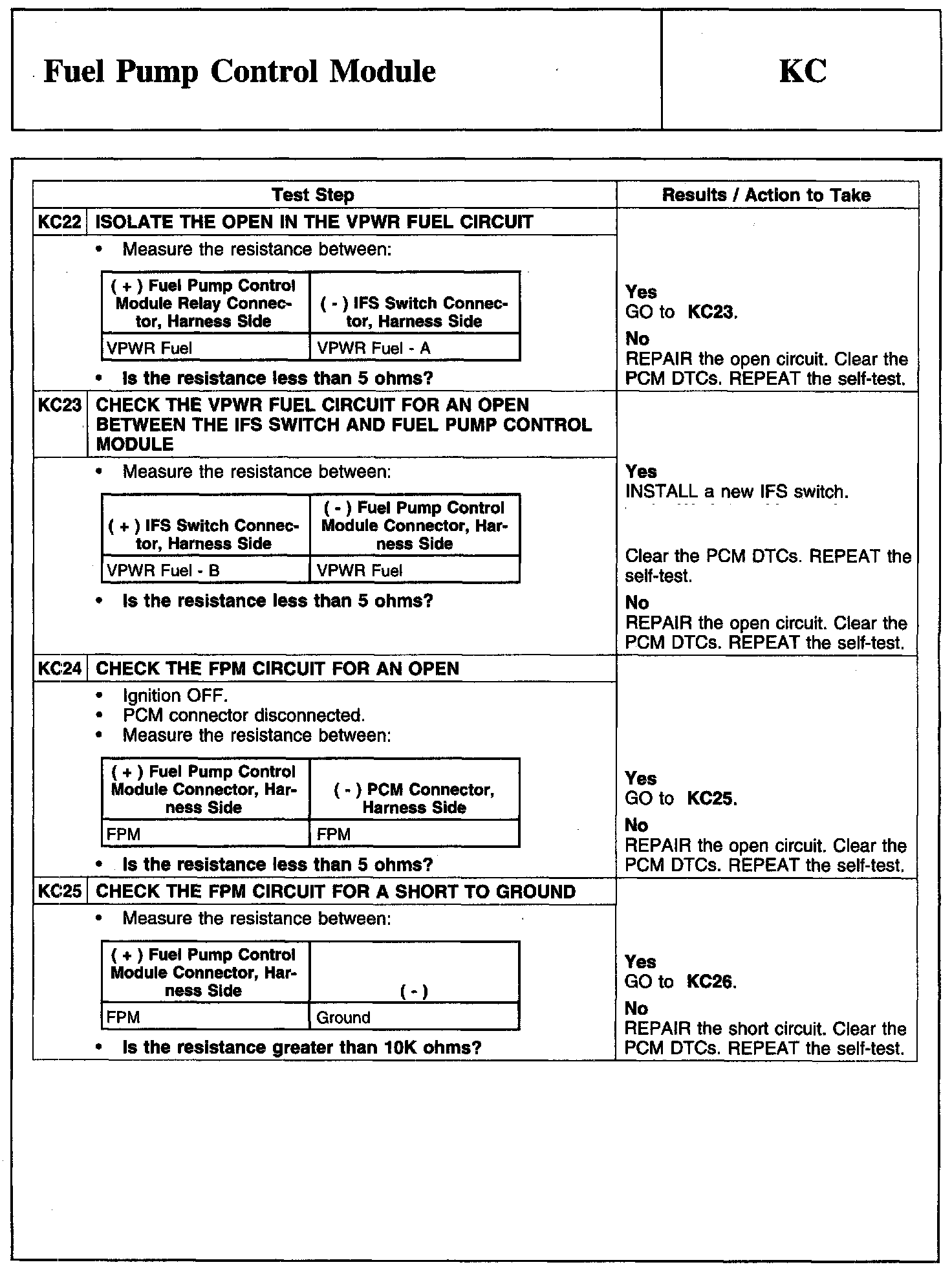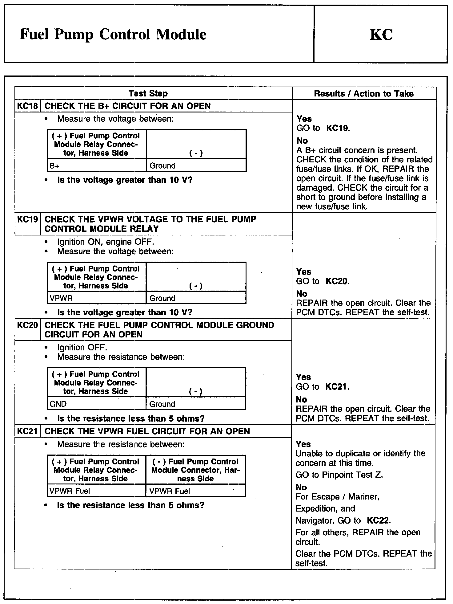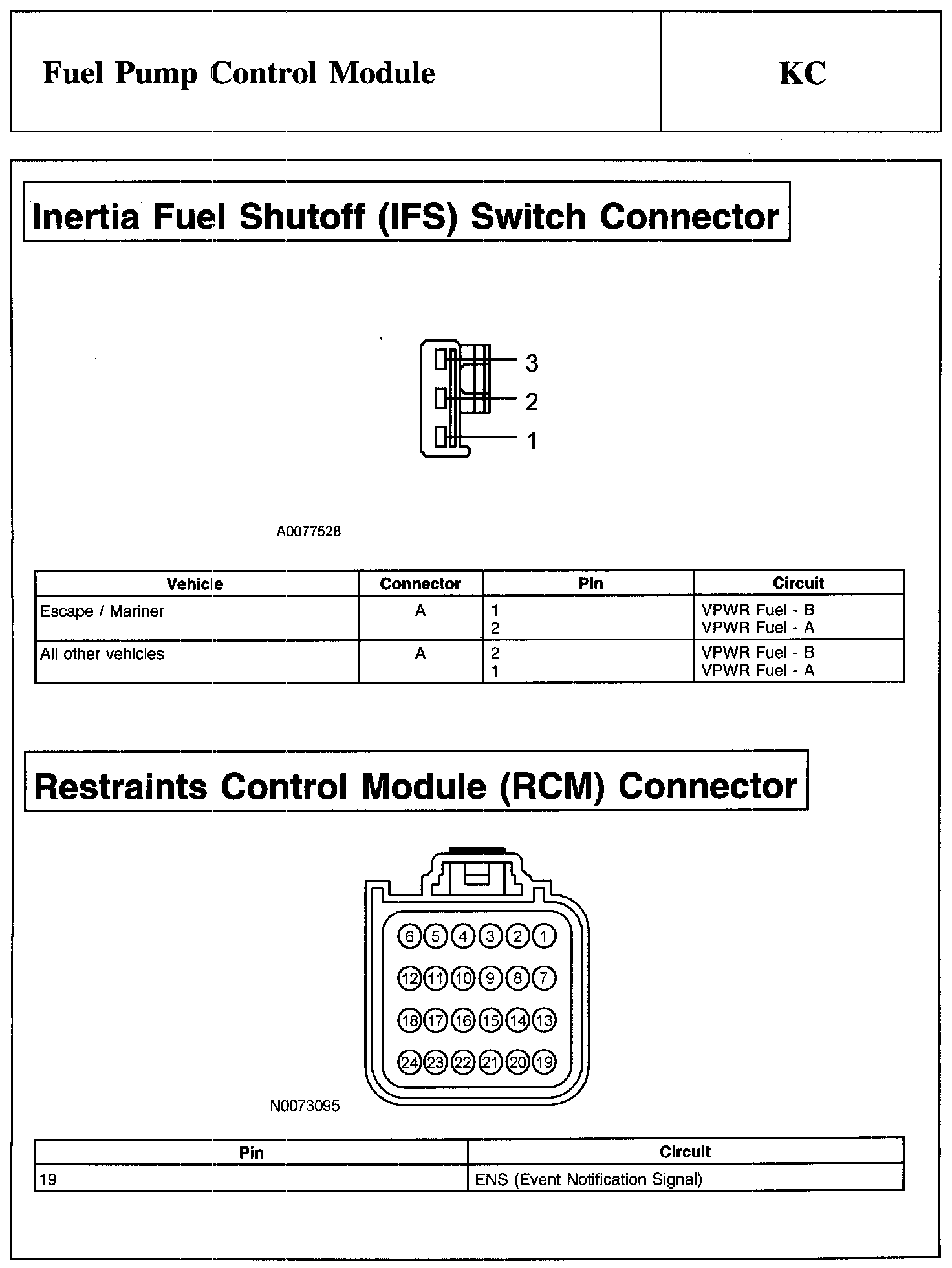 PINPOINT TEST KC: FUEL PUMP CONTROL MODULEFuel Pump Control Module Connector: