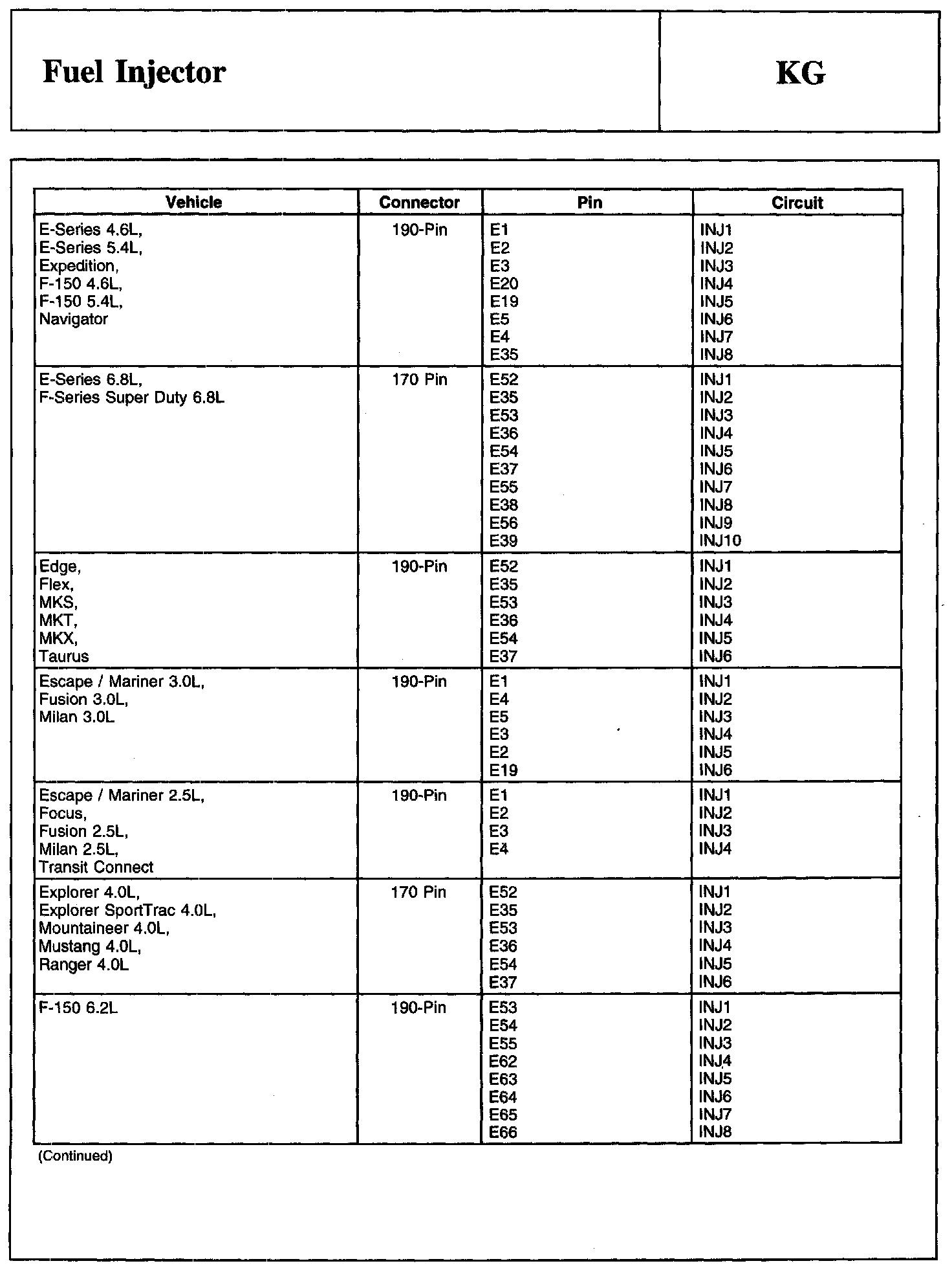 Injector (INJ) Connector And Powertrain Control Module (PCM) Connector: