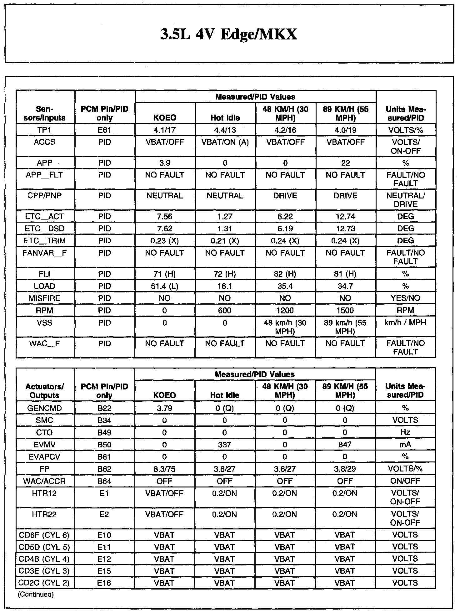 The Typical Diagnostic Reference Value Charts do not display fault parameter identifications (PIDs). These are PIDs which indicate a hard fault with the circuit. They display a value of YES or NO and are PIDs ending with the letter F.