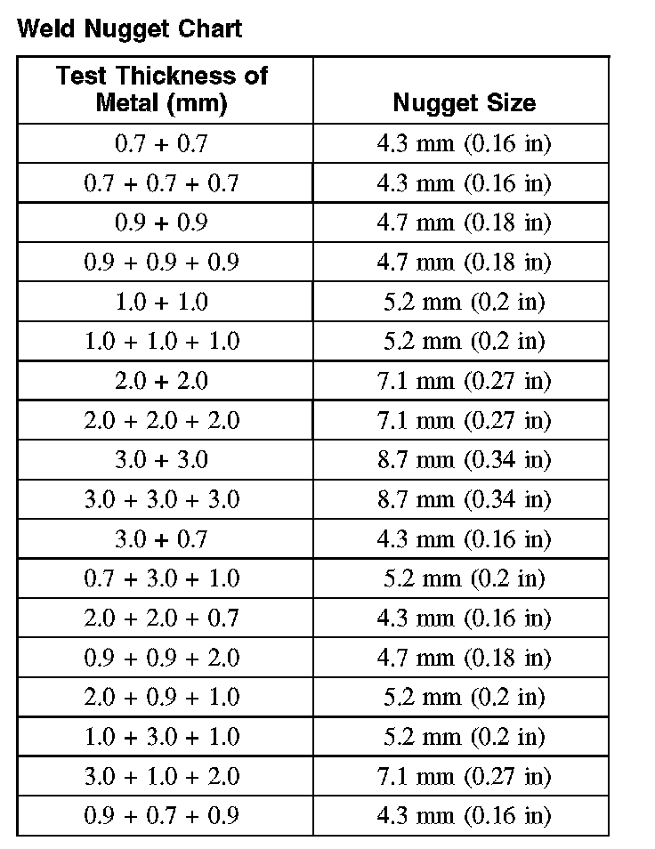 Weld Nugget Chart: