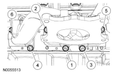 Using a new gasket, install the LH exhaust manifold and 6 new nuts.