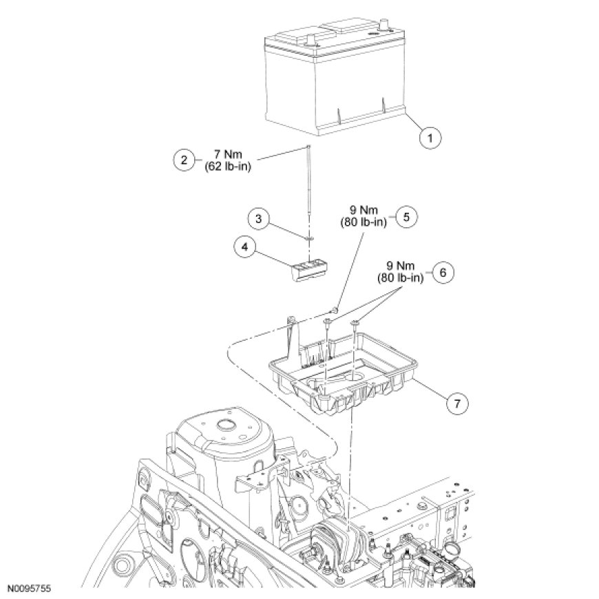 Battery and Battery Tray - Exploded View
