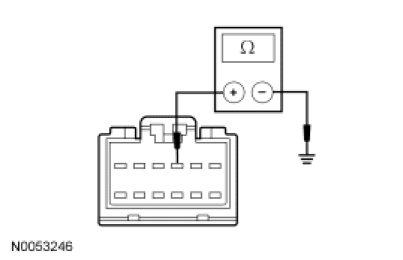 - Measure the resistance between the SDARS module C4344-3, circuit GD148 (BK/YE), harness side and ground.
