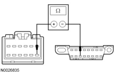 - Measure the resistance between the SDARS module C4344-1, circuit VDB06 (GY/OG), harness side and the DLC C251-3, circuit VDB06 (GY/OG), harness side.