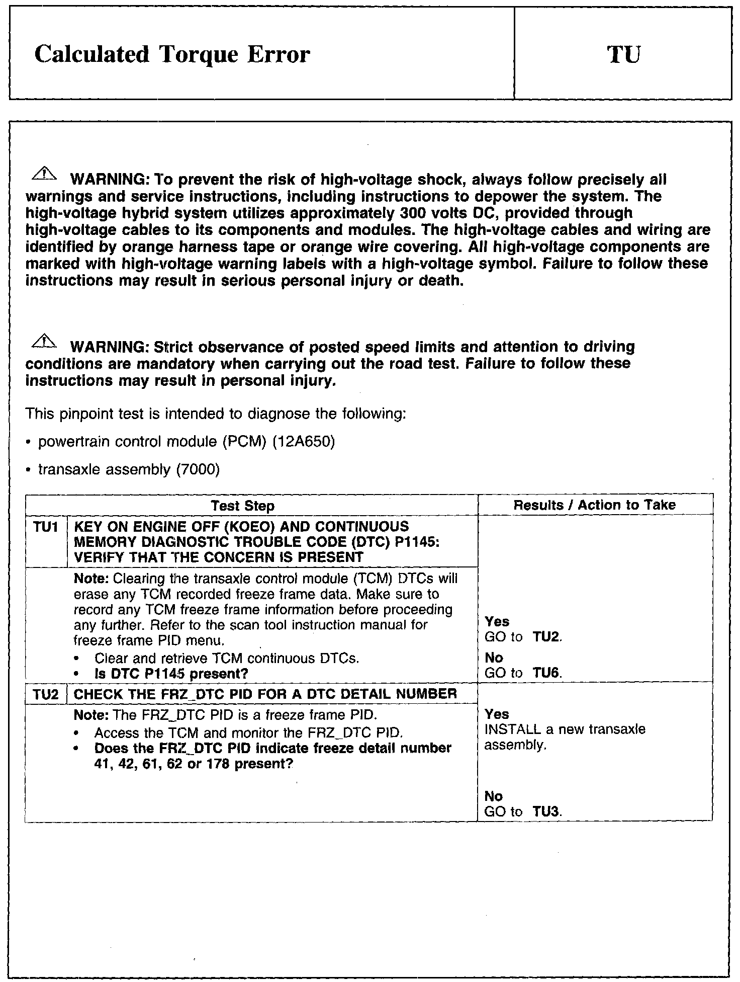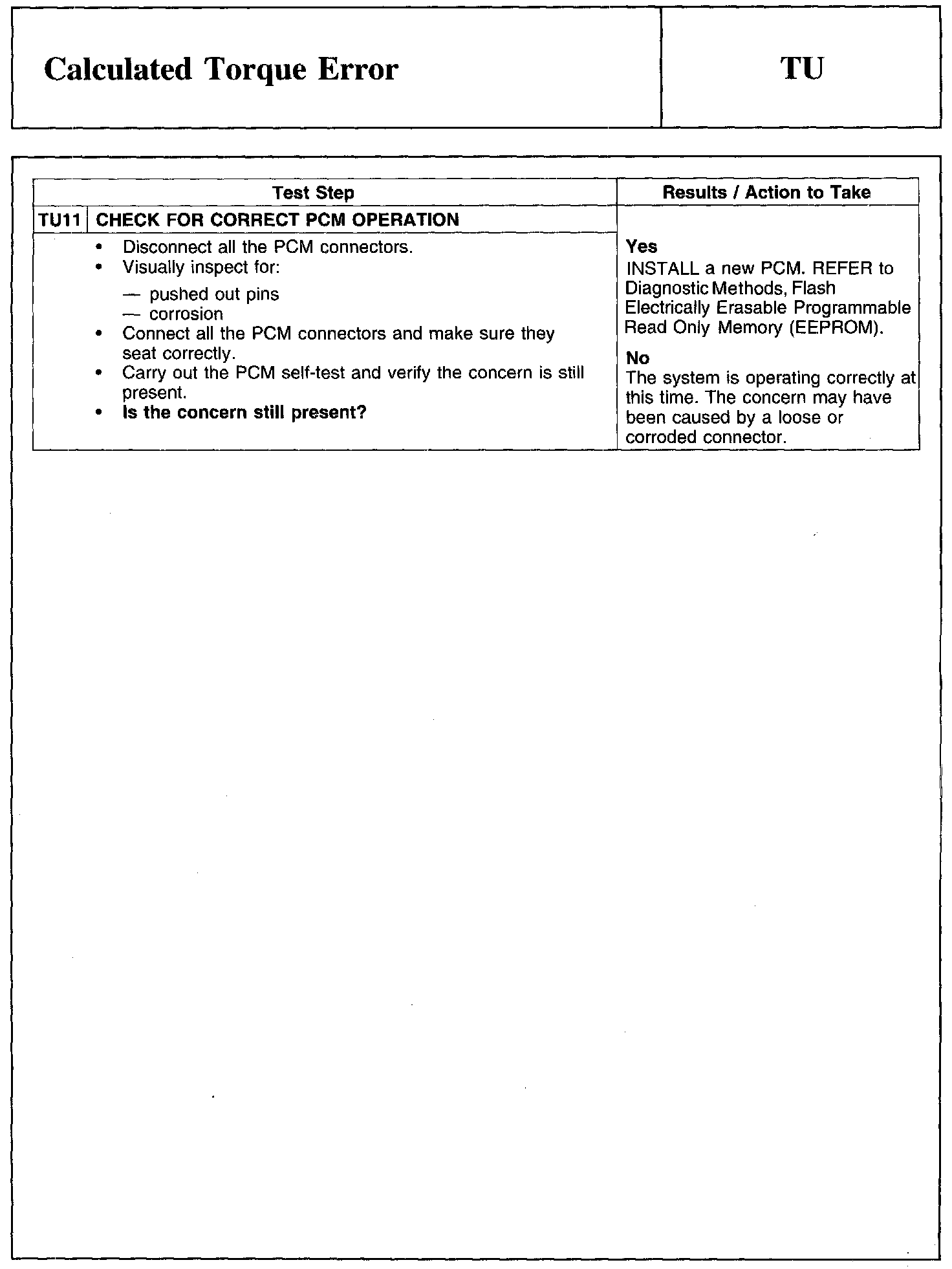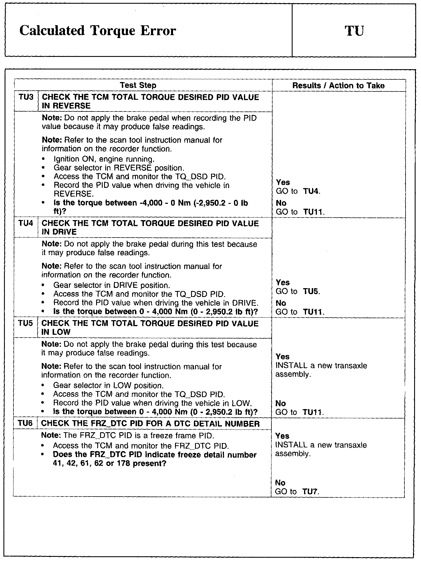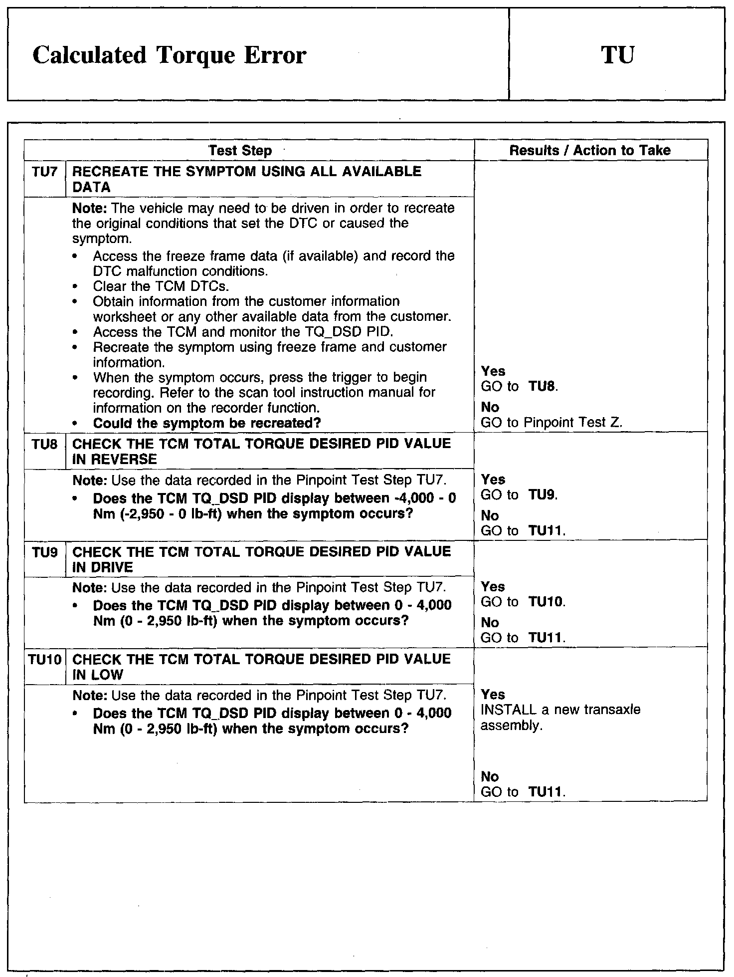 Test TU: Calculated Torque Error