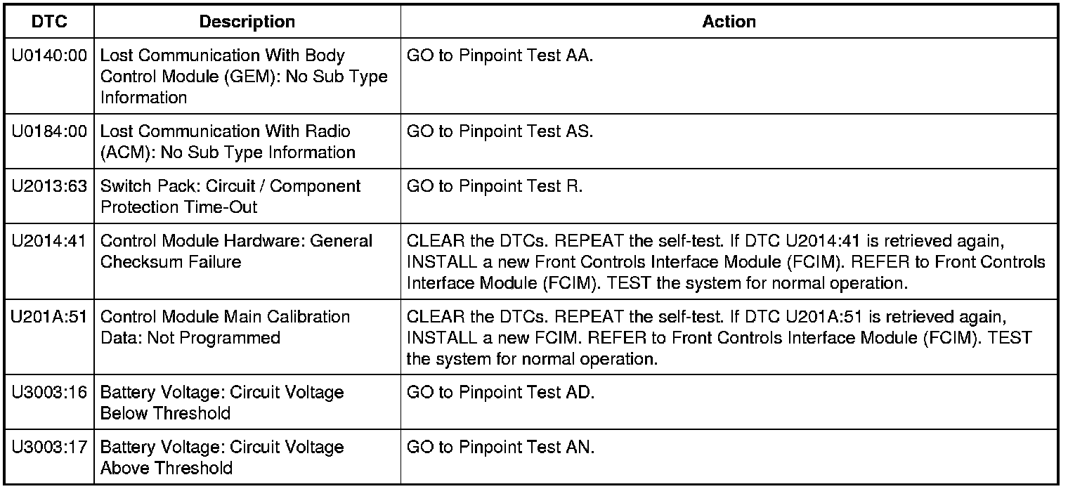 NOTE: This module utilizes a 5-character DTC followed by a 2-character failure-type code. The failure-type code provides information about specific fault conditions such as opens or shorts to ground. Continuous memory DTCs have an additional 2-character DTC status code suffix to assist in determining DTC history.