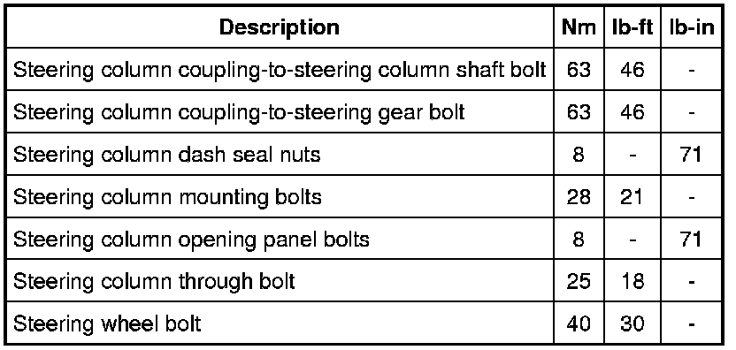 Torque Specifications