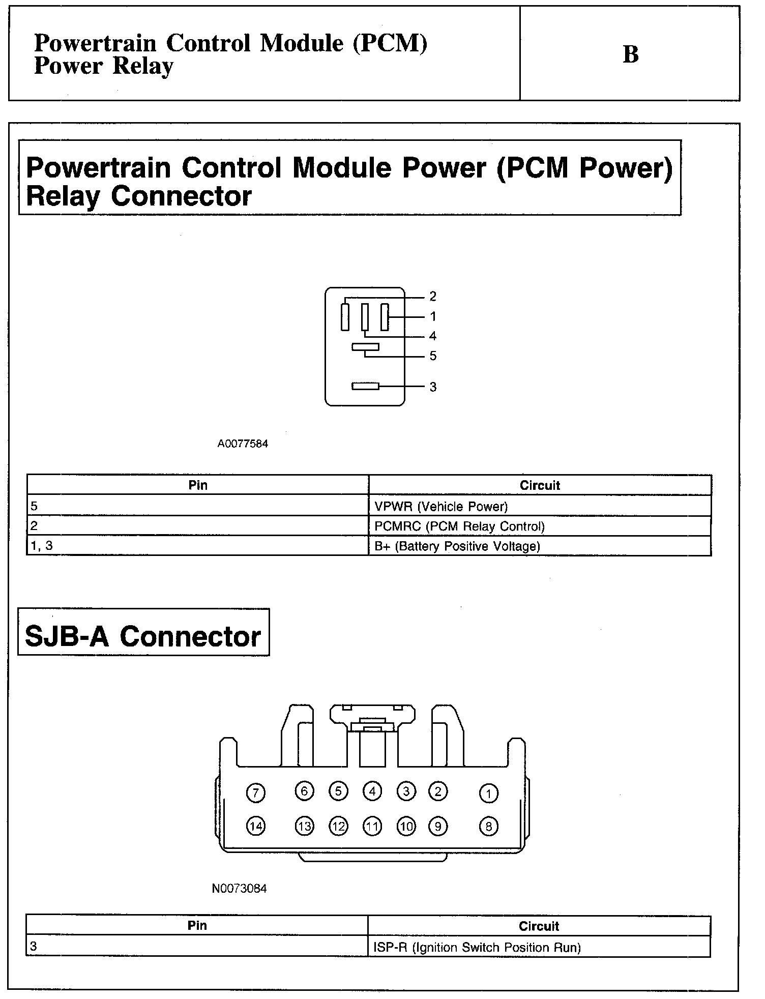 Powertrain Control Module Power (PCM Power) Relay Connector And SJB-A Connector: