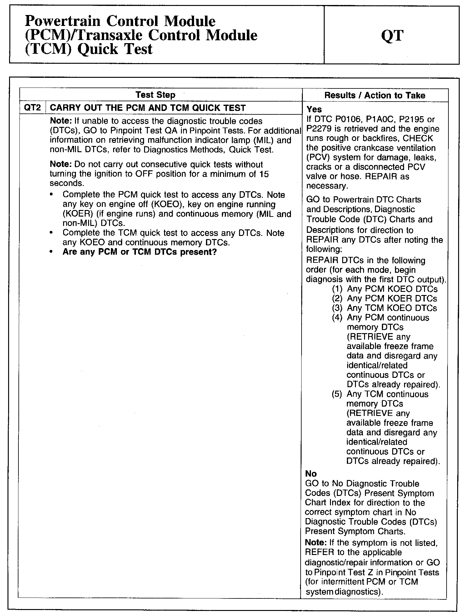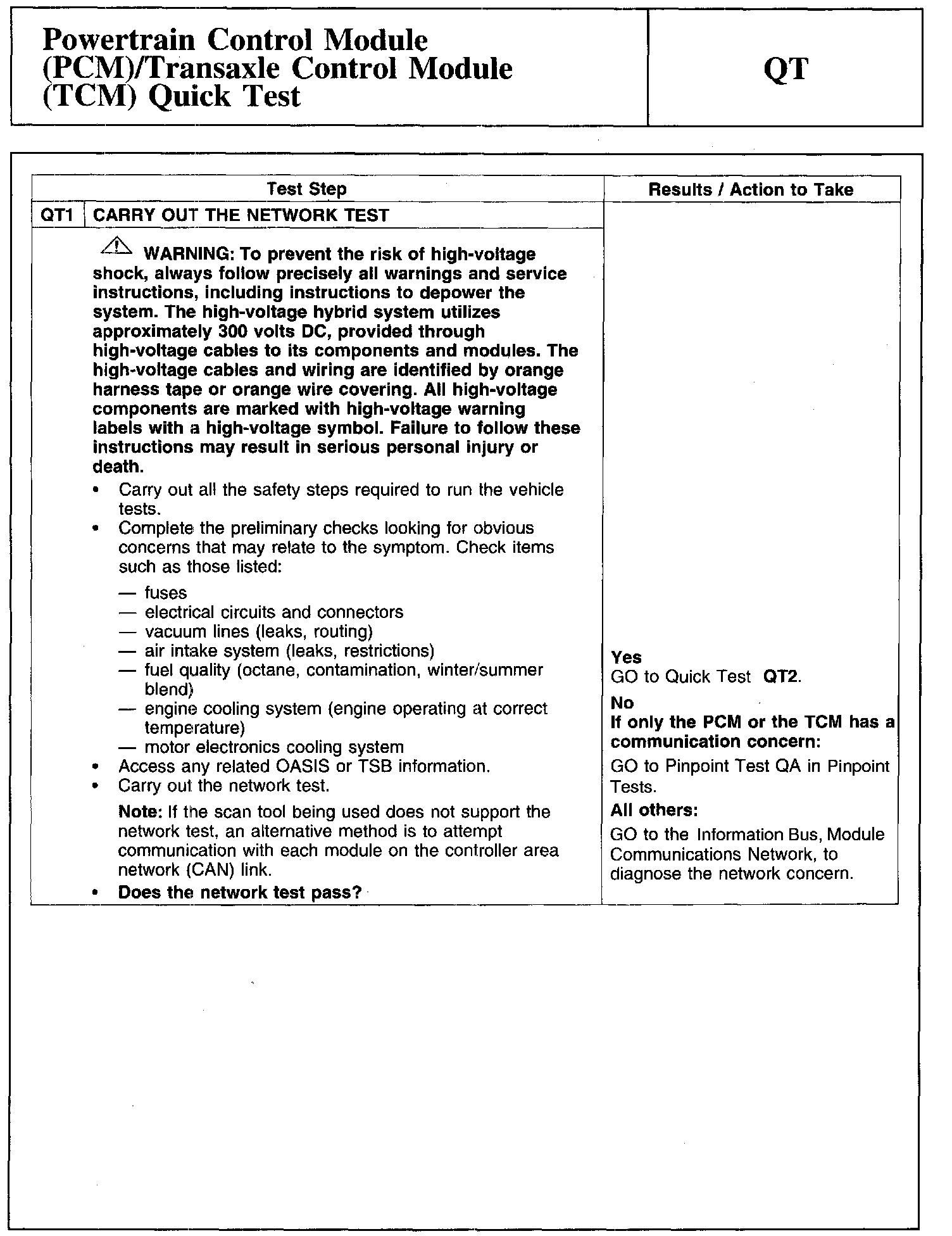 QT : Powertrain Control Module (PCM)/Transaxle Control Module (TCM) Quick Test