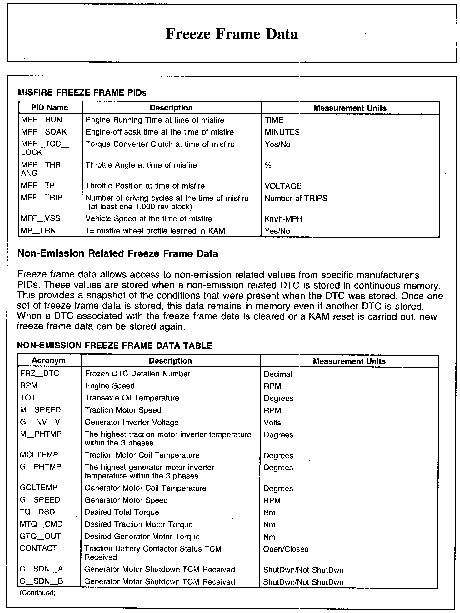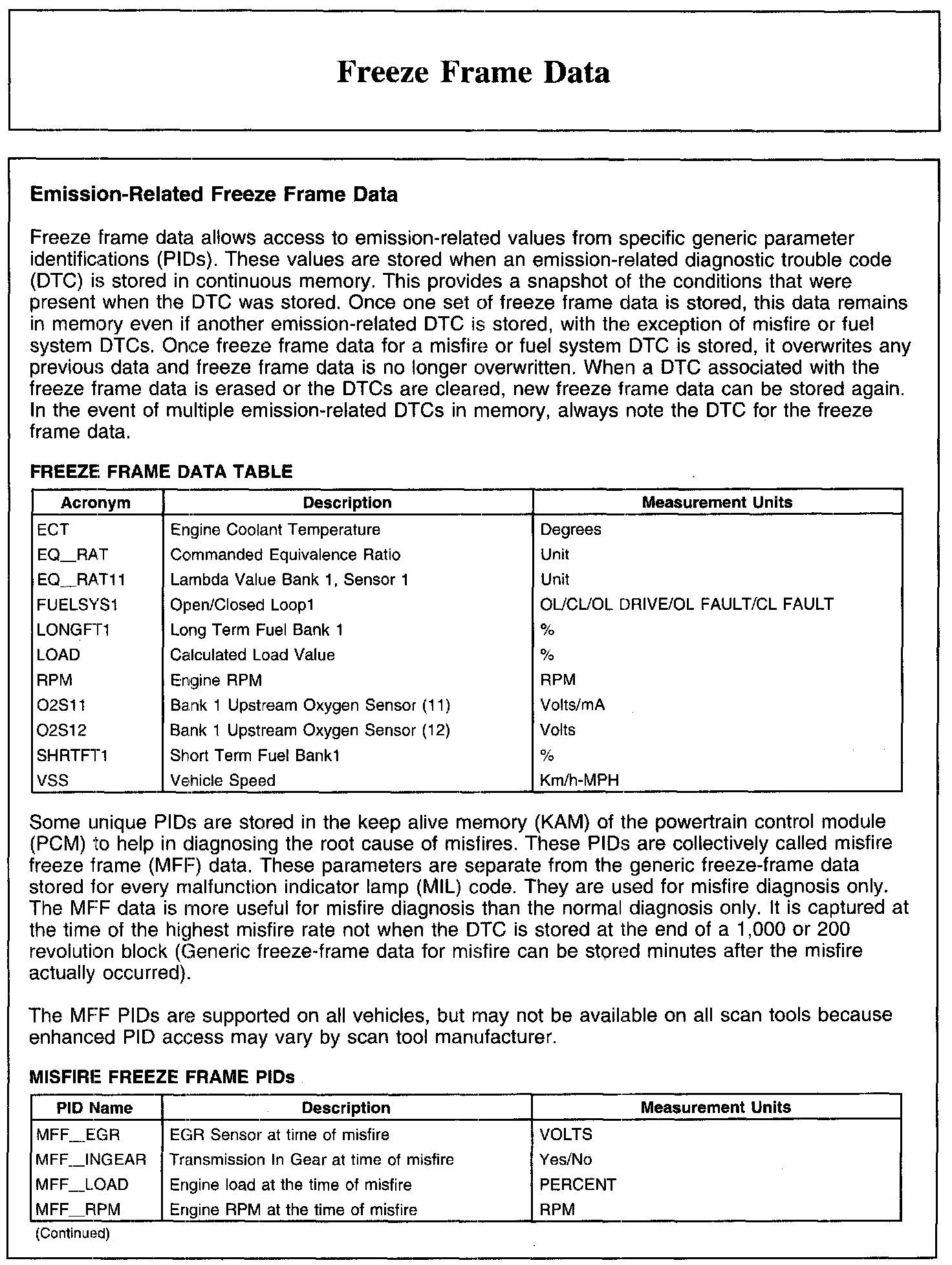 FREEZE FRAME DATA