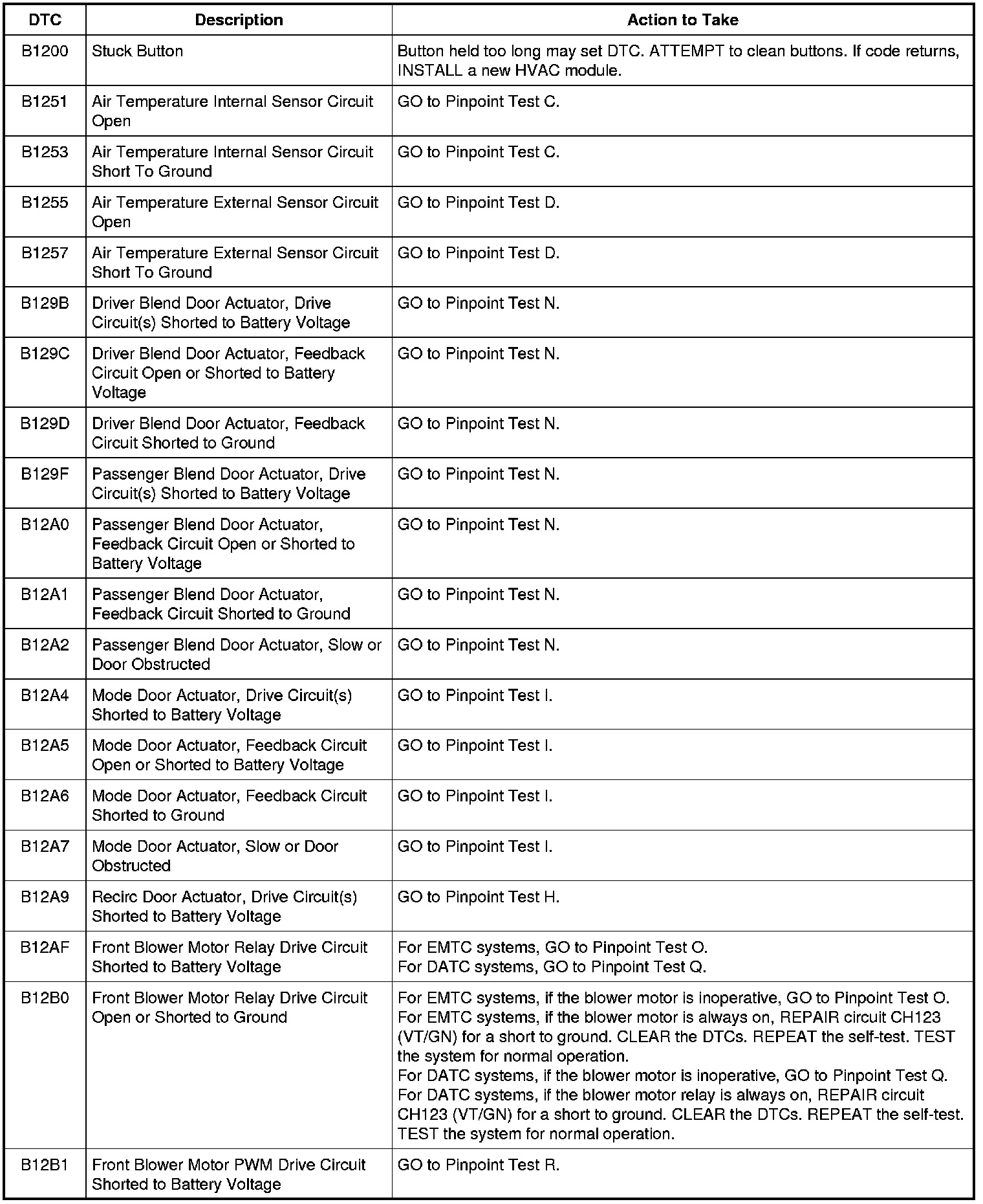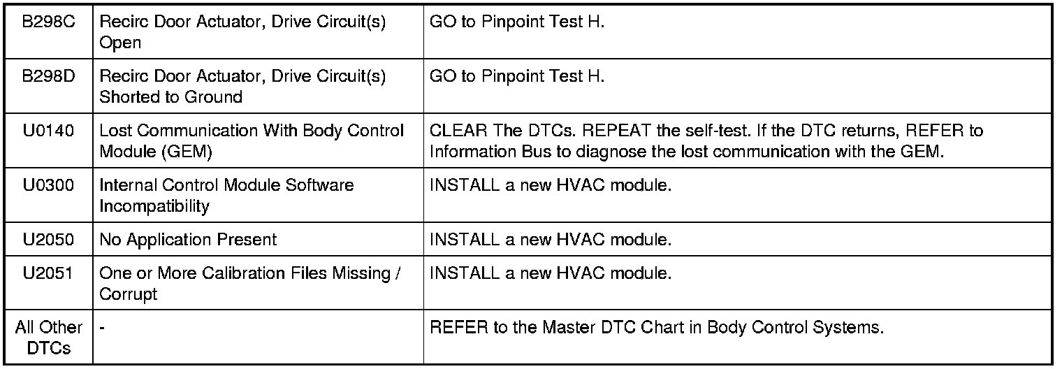 HVAC Module DTC Chart