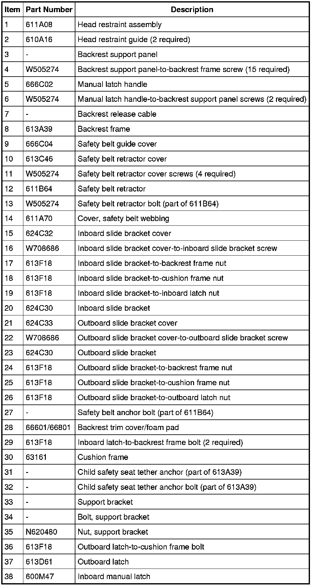 Seat - Exploded View, Third Row