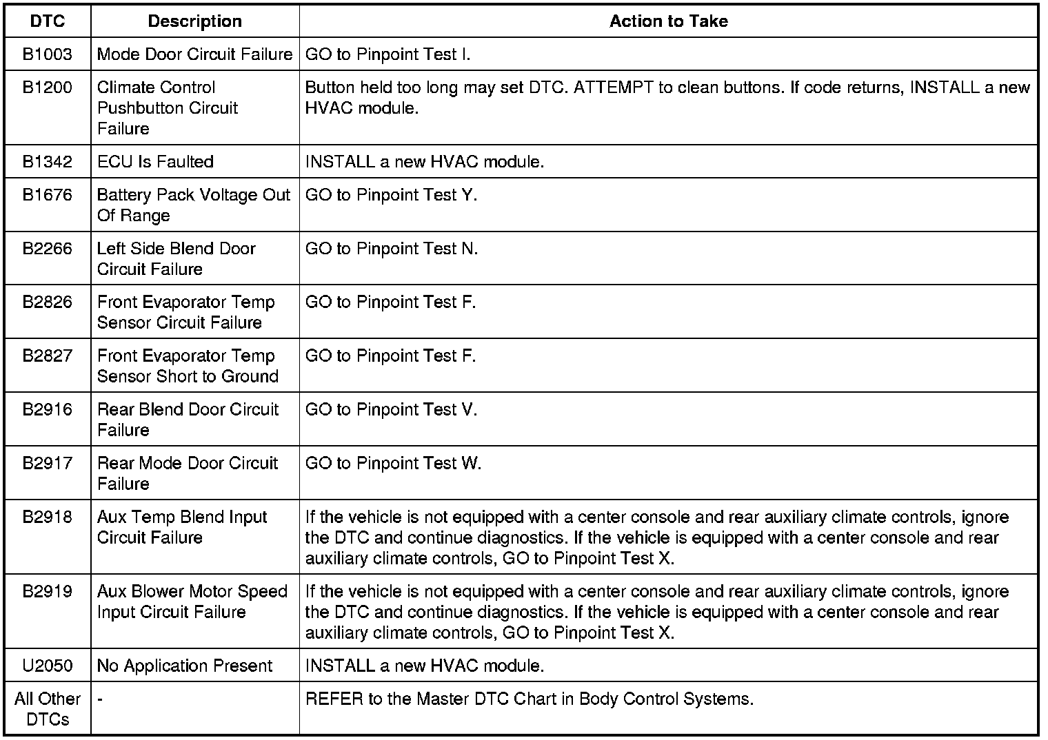 HVAC Module - Electronic Manual Temperature Control (EMTC) DTC Chart