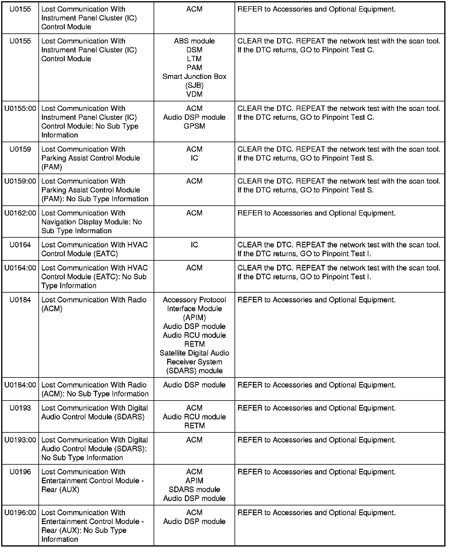 NOTE: Network DTCs (U-codes) are often a result of intermittent concerns such as damaged wiring or low battery voltage occurrences. Additionally, vehicle repair procedures such as module reprogramming often set network DTCs. Replacing a module to resolve a network DTC is unlikely to resolve the concern. To prevent repeat network DTC concerns, inspect all network wiring, especially connectors. Test the vehicle battery, refer to Battery.