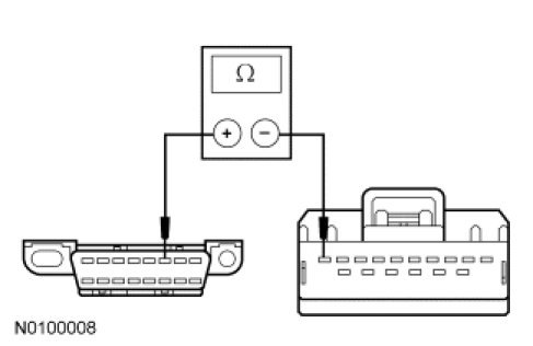 - Measure the resistance between the Data Link Connector (DLC) C251-6, circuit VDB04 (WH/BU), harness side and the VDM C2131a-10, circuit VDB04 (WH/BU), harness side.