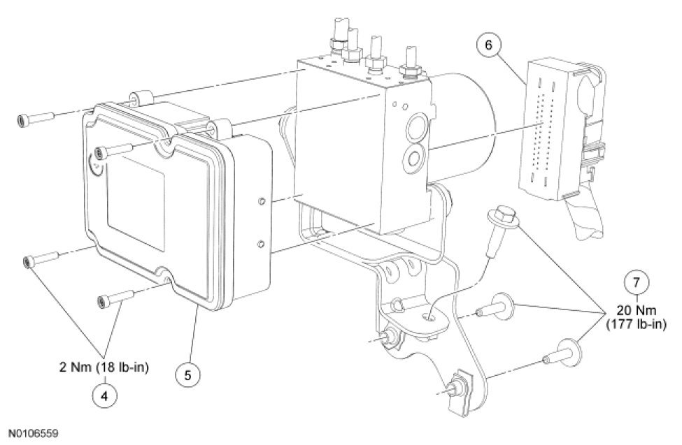 9. If installing a new ABS module, calibrate the stability control sensor cluster sensor. Connect the scan tool and carry out the IVD Initialization sequence.
