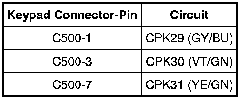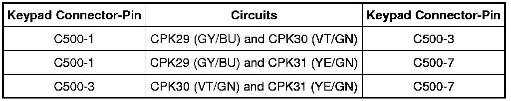- Measure the resistance between the keypad, harness side as follows: