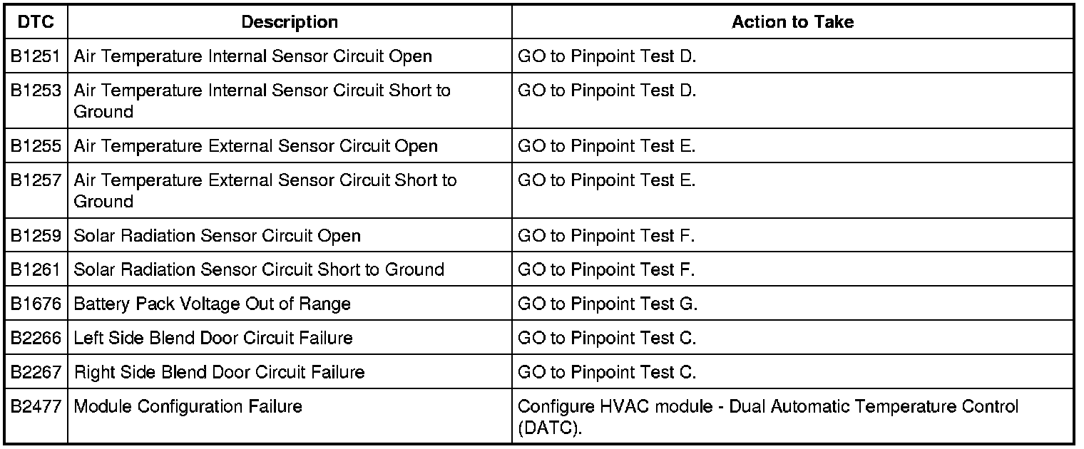 HVAC Module - Dual Automatic Temperature Control (DATC) DTC Chart