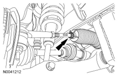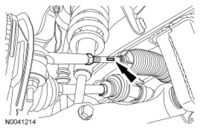7. NOTICE: Make sure to hold the tie-rod end stationary while tightening the nut or damage to the steering gear bellows can occur.