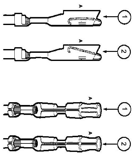 - Use heat shrinkable tubes marked with ES-1 (16-22 GA) or ES-2 (10-18 GA) to seat wire splice.