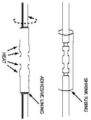 8. Use shielded heat gun to heat the repaired area until adhesive flows Out of both ends of heat shrink tubing.
