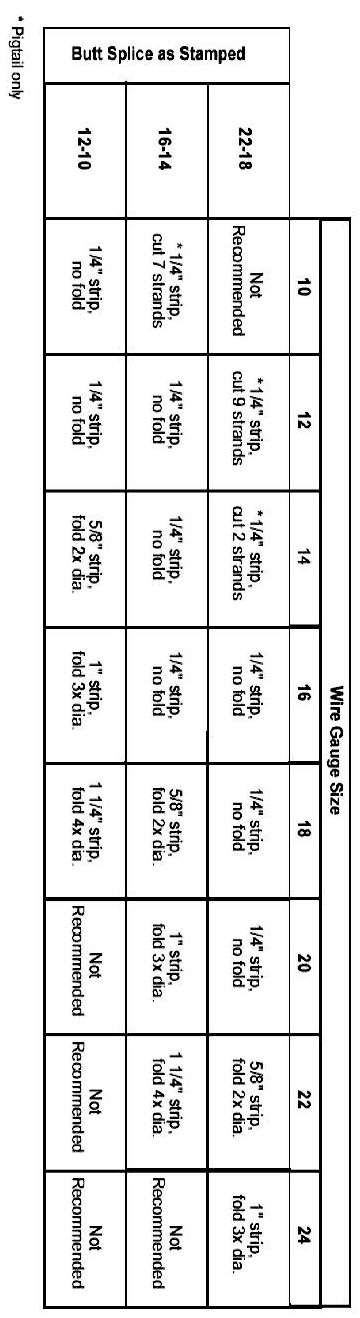 Recommended splicing method - Crimp (For 10-22 AWG Diameter Wire to Like Wire Diameter)
