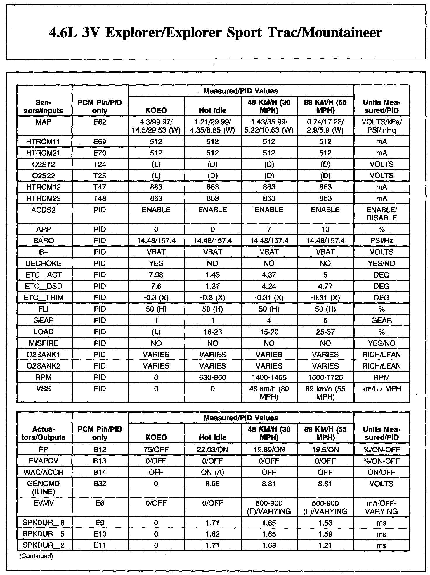 4.6L 3V EXPLORER/EXPLORER SPORT TRAC/MOUNTAINEER