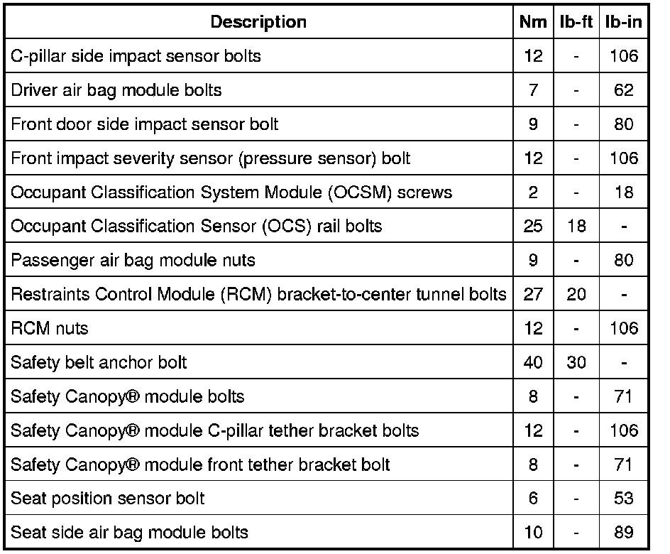 Torque Specifications