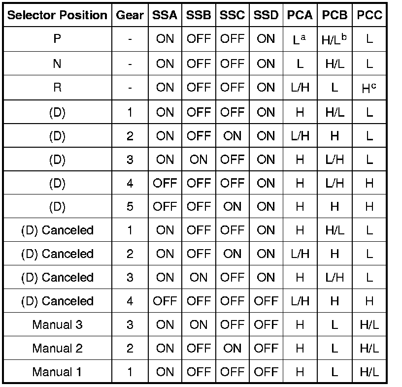 Solenoid Operation Chart