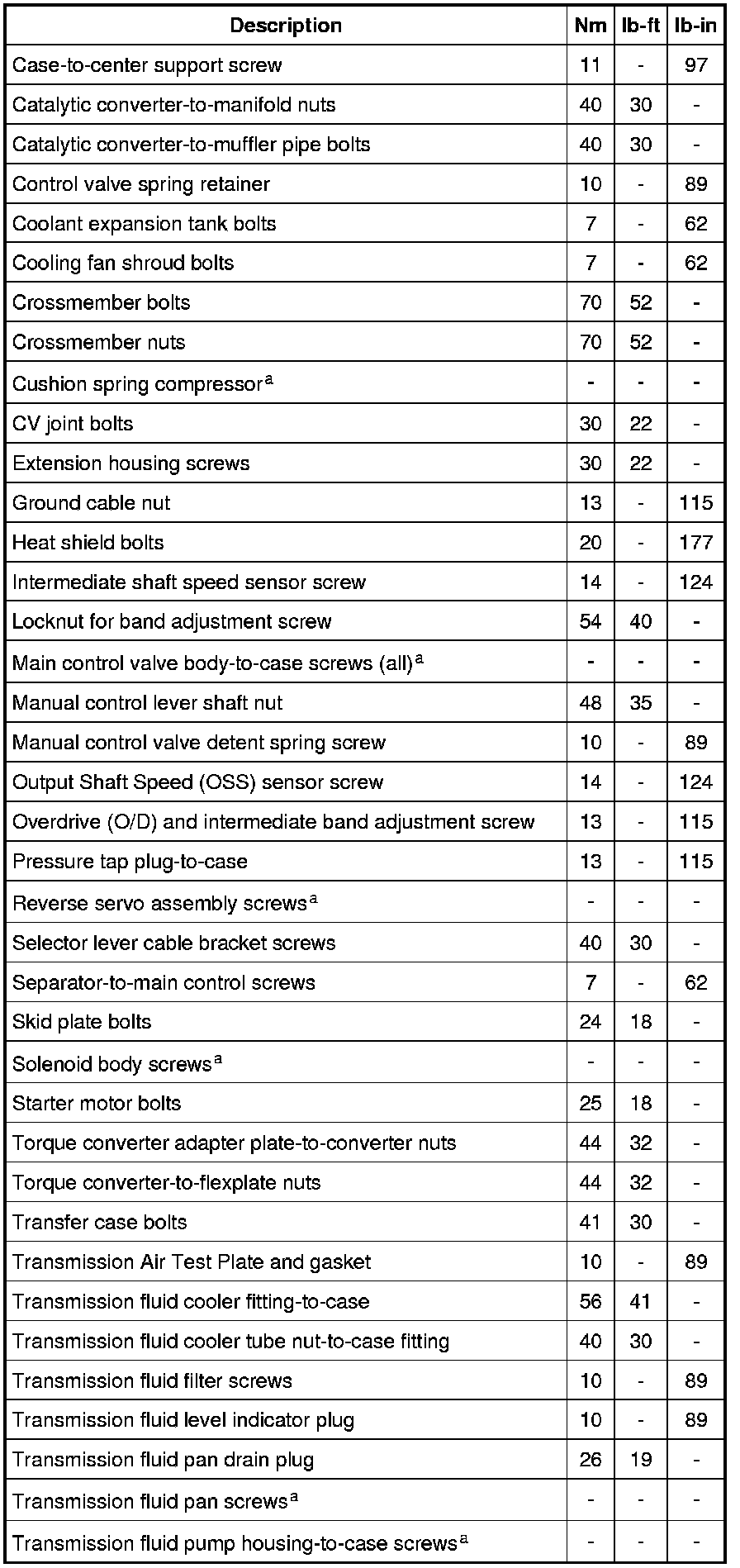 Torque Specifications