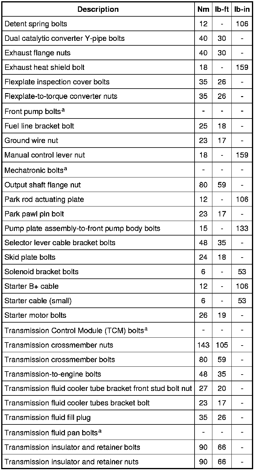 Torque Specifications