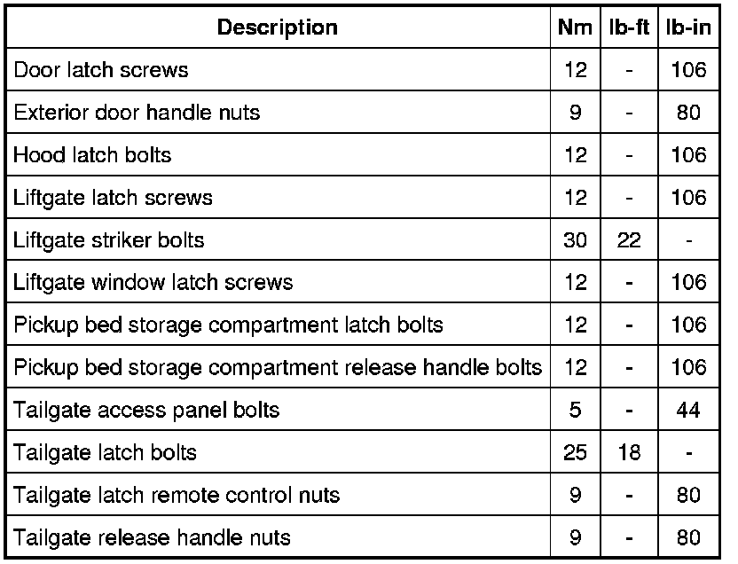 Torque Specifications