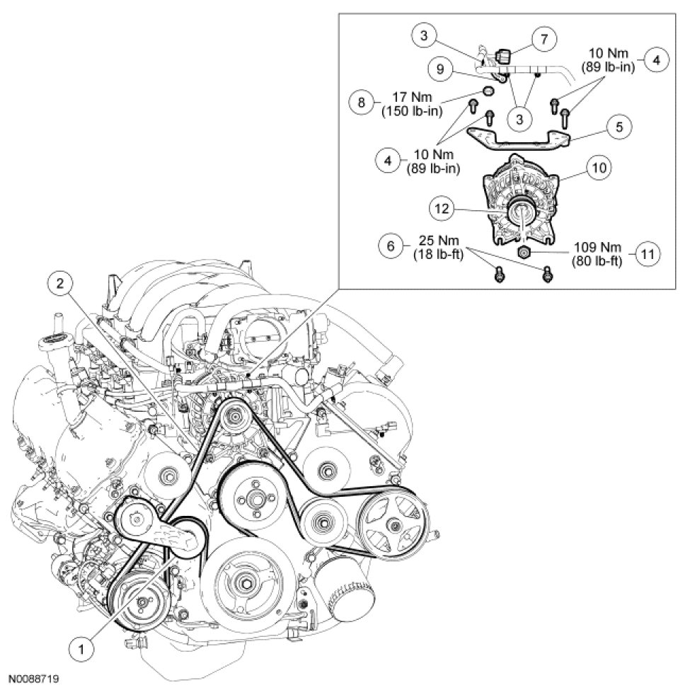 8. Position the protective cover aside, remove and discard the nut and position the generator B+ terminal aside.