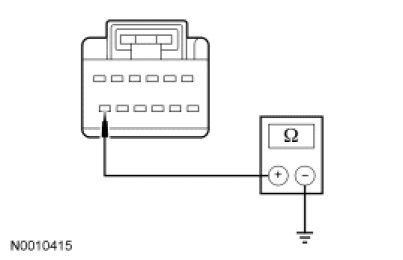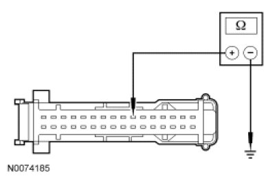 - Measure the resistance between manual climate control assembly C294C-12, circuit CRD09 (BU/GY), harness side and ground.