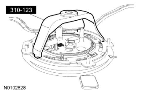 6. Using the Fuel Tank Sending Unit Wrench, remove the FP module locking ring.