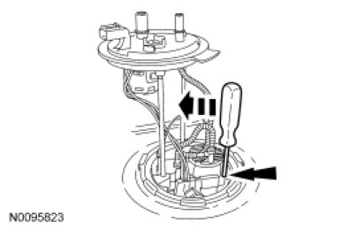 NOTE: If the FP does not clear the FP mounting flange on the fuel tank, the use of a screwdriver may be necessary.