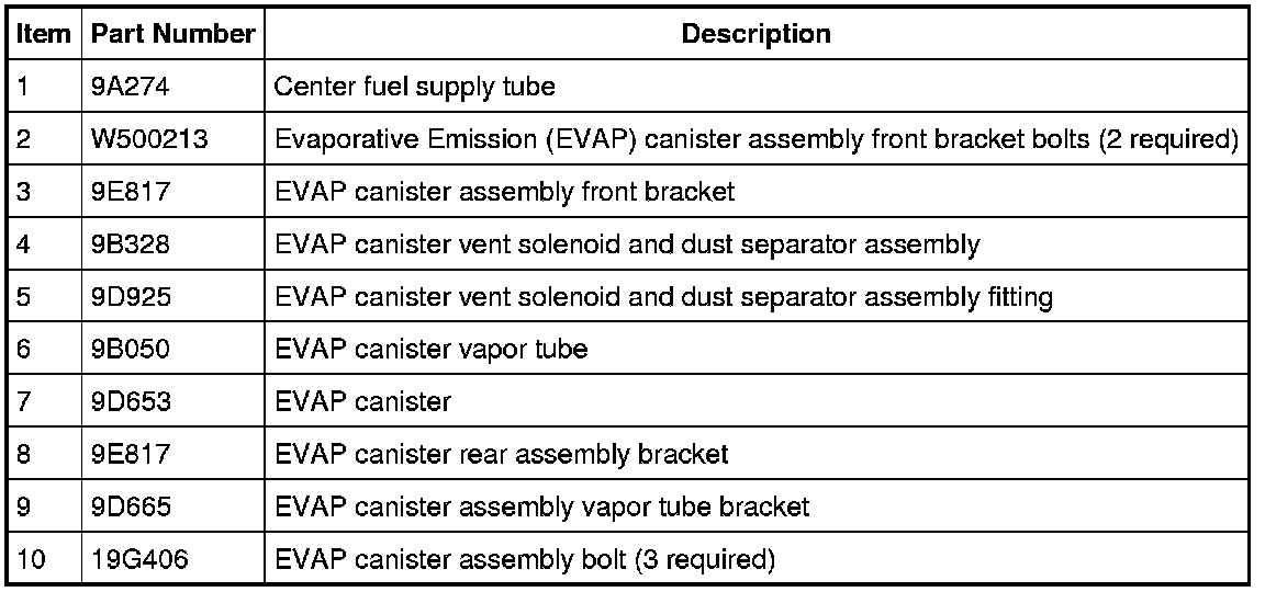 EVAP Canister, Brackets, Vent Solenoid and Dust Separator Assembly, Center Fuel Tube and Vapor Tube Disassembly