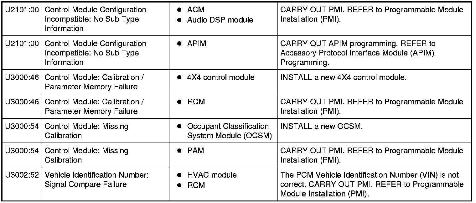 NOTE: Some modules on this vehicle utilize a 5-character DTC followed by a 2-character failure-type code. The failure-type code provides information about specific fault conditions such as opens, or shorts to ground. Continuous Memory DTCs have an additional 2-character DTC status code suffix to assist in determining DTC history.