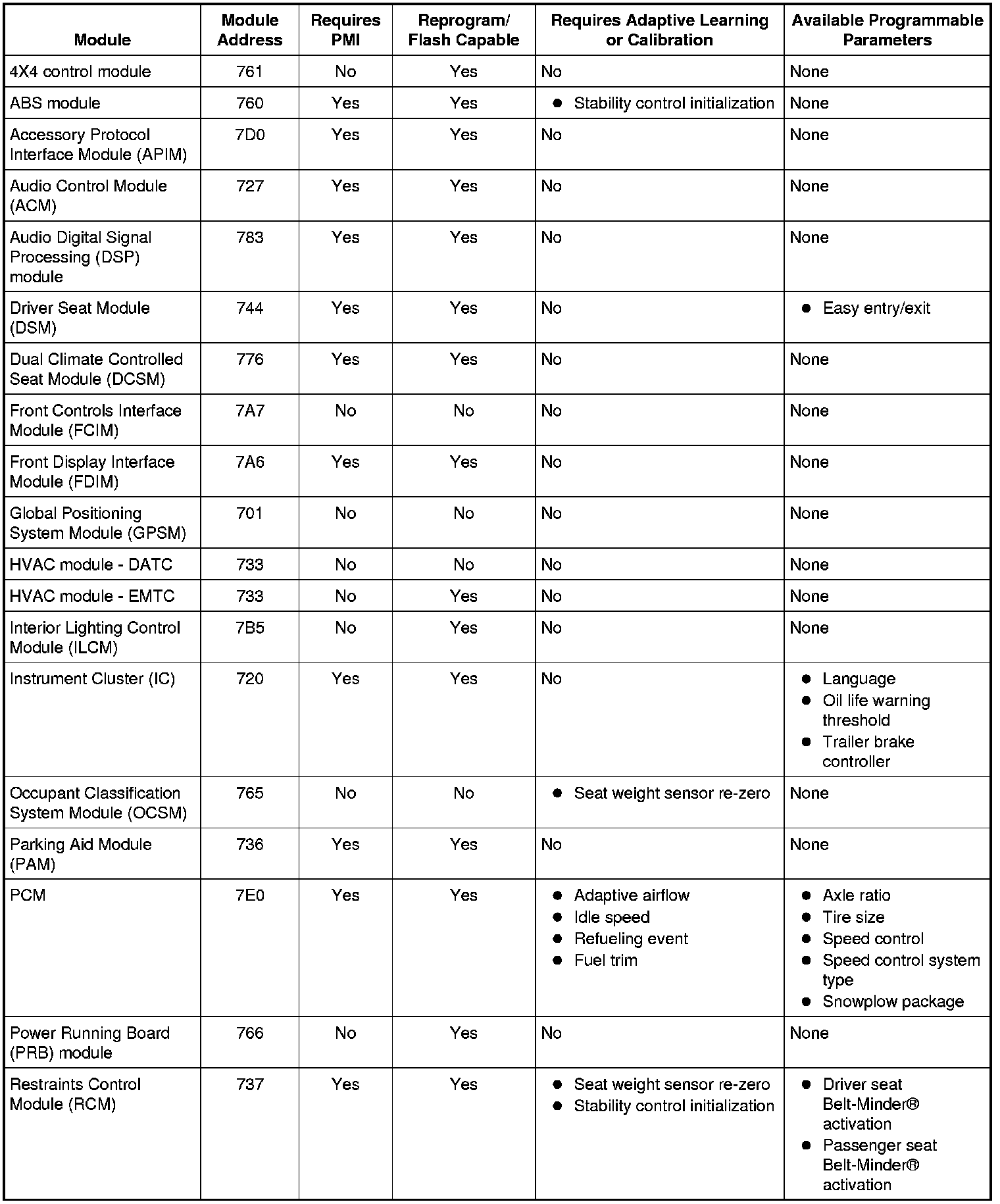 Programmable parameters are customer preference items that may be modified by the dealer via scan tool or in some cases modified by the customer following a procedure listed in the vehicle Owner's Literature. While many configuration options may exist for a module, only a few of these options are programmable parameters.