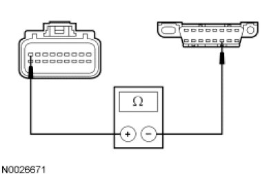 - Measure the resistance between the OCSM C3159-9, circuit VDB05 (WH), harness side and the DLC C251-14, circuit VDB05 (WH), harness side.