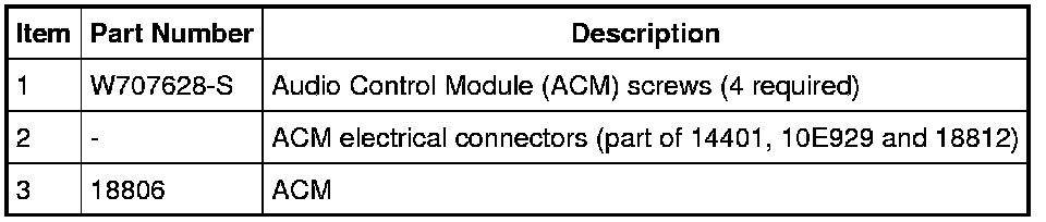 NOTE: It is not necessary to remove the Audio Control Module (ACM) to retrieve the part number. For additional information, refer to Audio Control Module (ACM) Self-Diagnostic Mode Audio Control Module (ACM) Self-Diagnostic Mode.