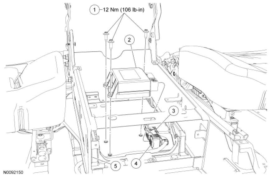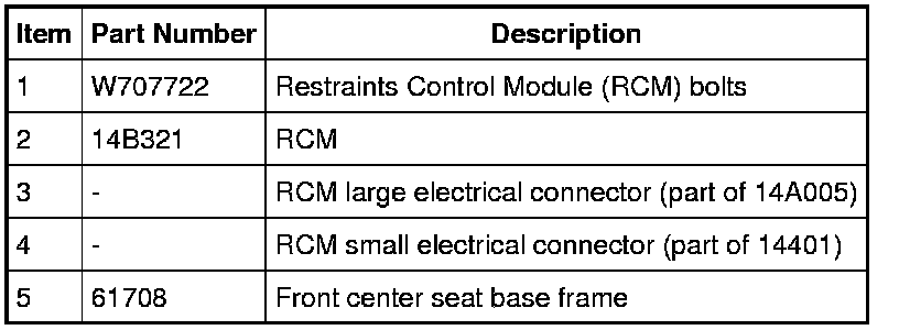 WARNING: Always tighten the fasteners of the restraints control module (RCM) and impact sensor (if equipped) to the specified torque. Failure to do so may result in incorrect restraint system operation, which increases the risk of personal injury or death in a crash.