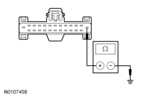 - Measure the resistance between the RETM C2949a-1, circuit GD114 (BK/BU), harness side and ground.
