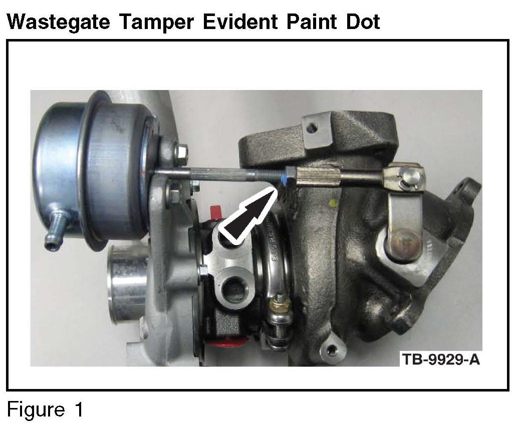 The full load output of some turbocharged engines will increase if the wastegate spring pre-tension is increased. This is not the case with the EcoBoost engine. Adjusting the wastegate pre-tension out of the specified range can result in DTCs. A tamper evident paint dot has been applied to the wastegate actuator adjustment mechanism to make modifications more apparent.