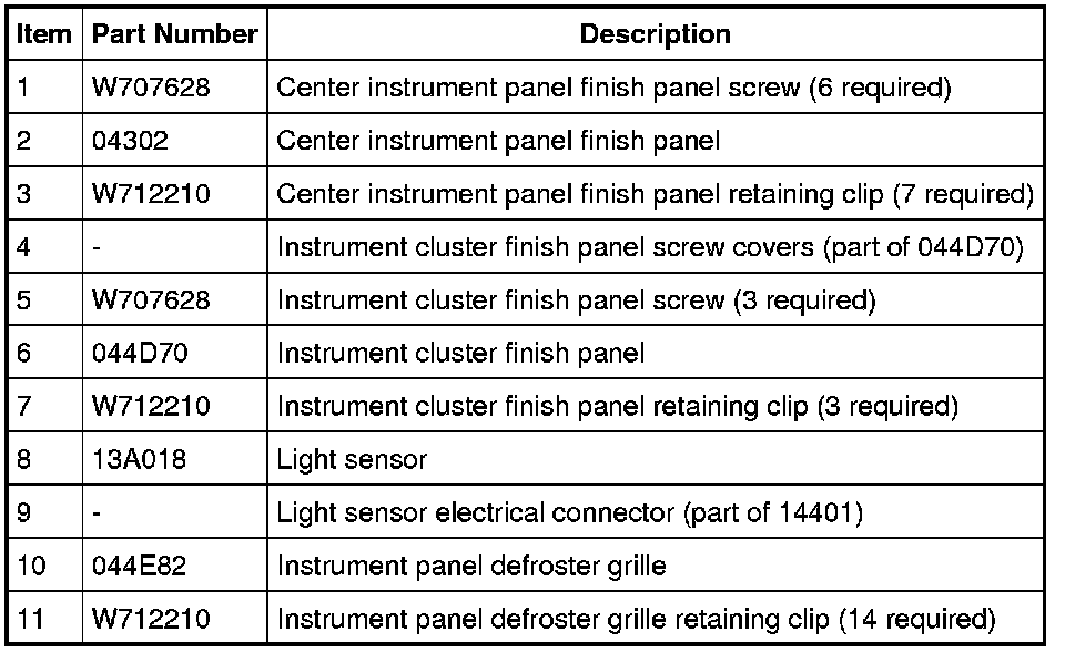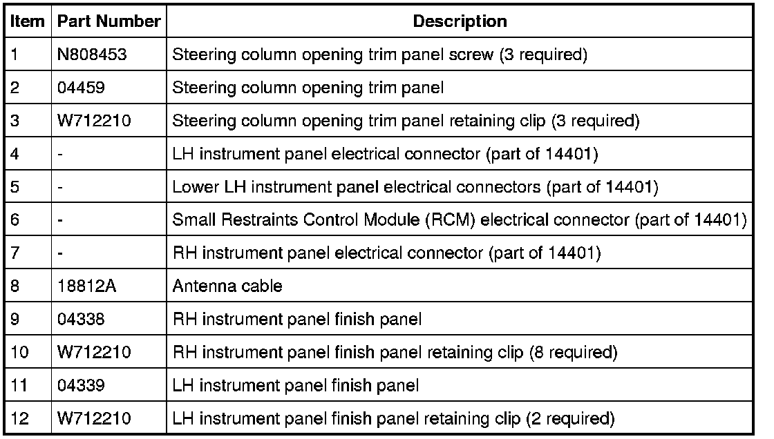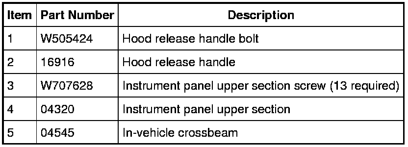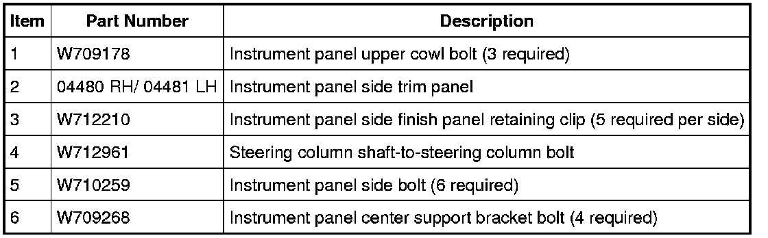 Instrument Panel Finish Panels and Fasteners