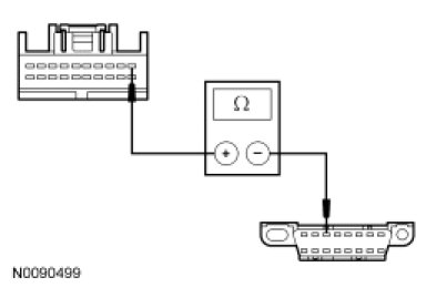 - Measure the resistance between the audio DSP module C4208a-11, circuit VDB07 (VT/OG), harness side and the DLC C251-11, circuit VDB07 (VT/OG), harness side.